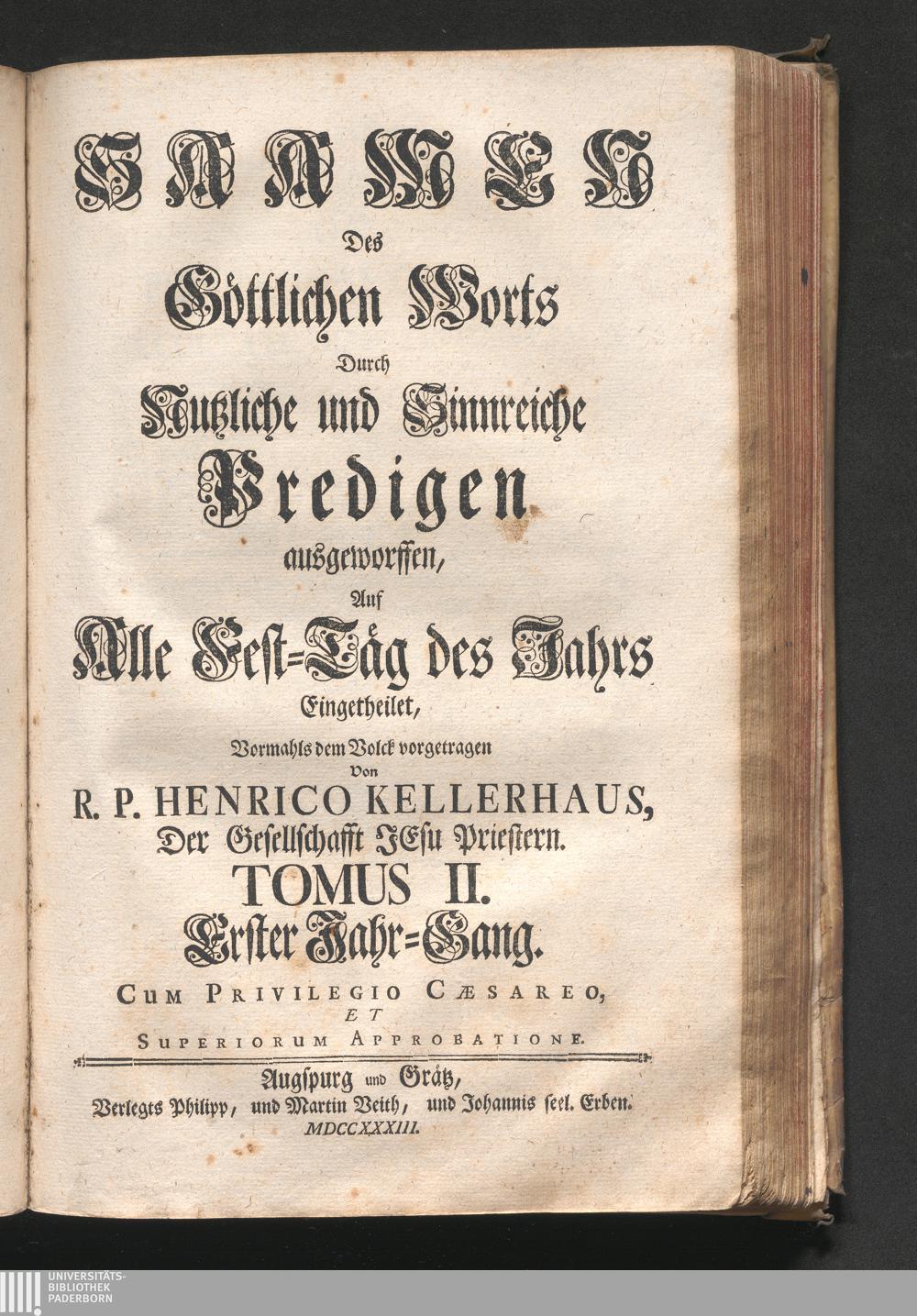 Jg. 1, Tomus II (1733) ... Auf Alle Fest-Täg des Jahrs Eingetheilet