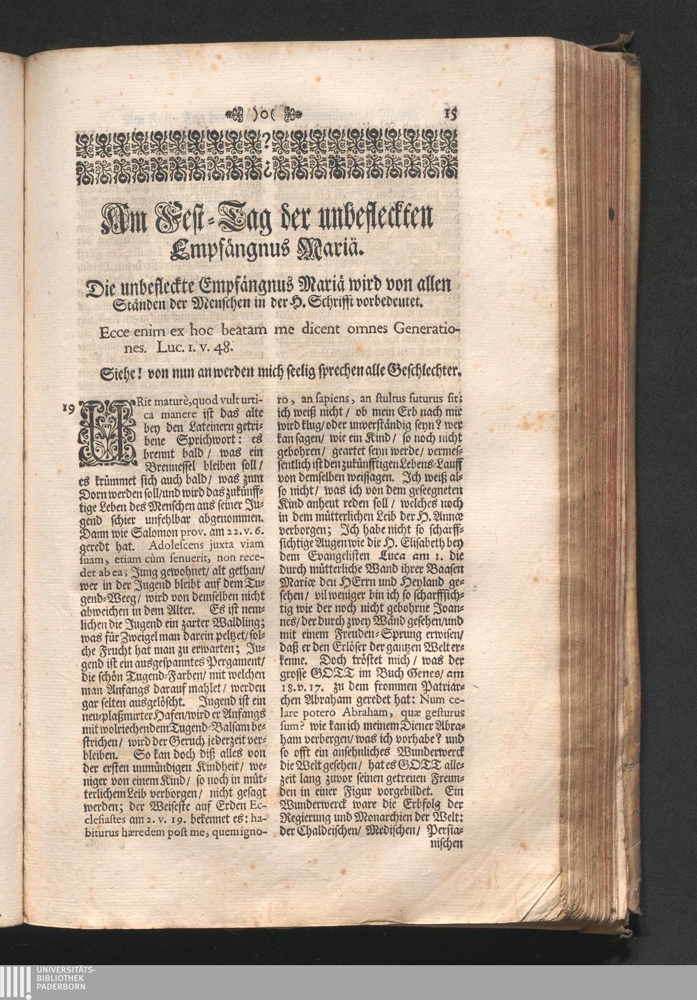 Am Fest der unbefleckte[n] Empfängnuß Mariä. Jnhalt. Die unbefleckte Empängnuß Mariä[...]