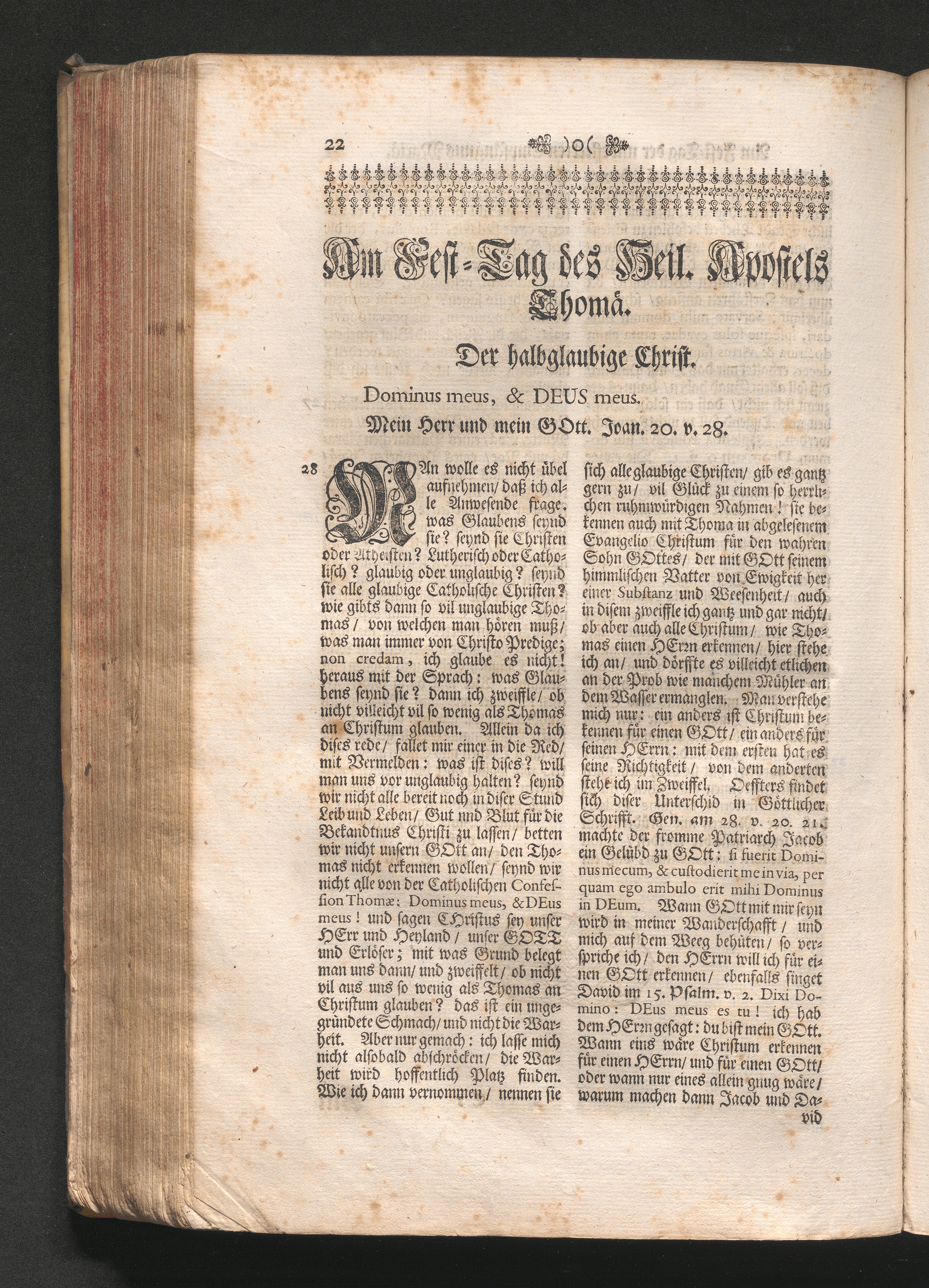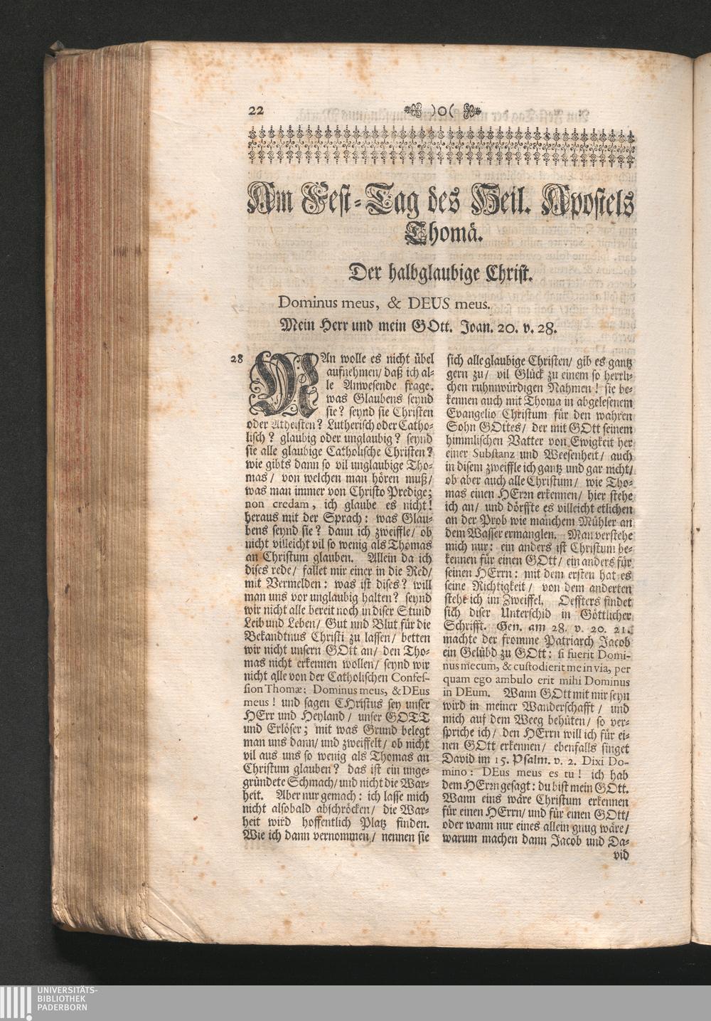 Am Fest des H. Apostels Thomä. Jnhalt. Der halb-glaubige Christ. Dominus meus, &[...]