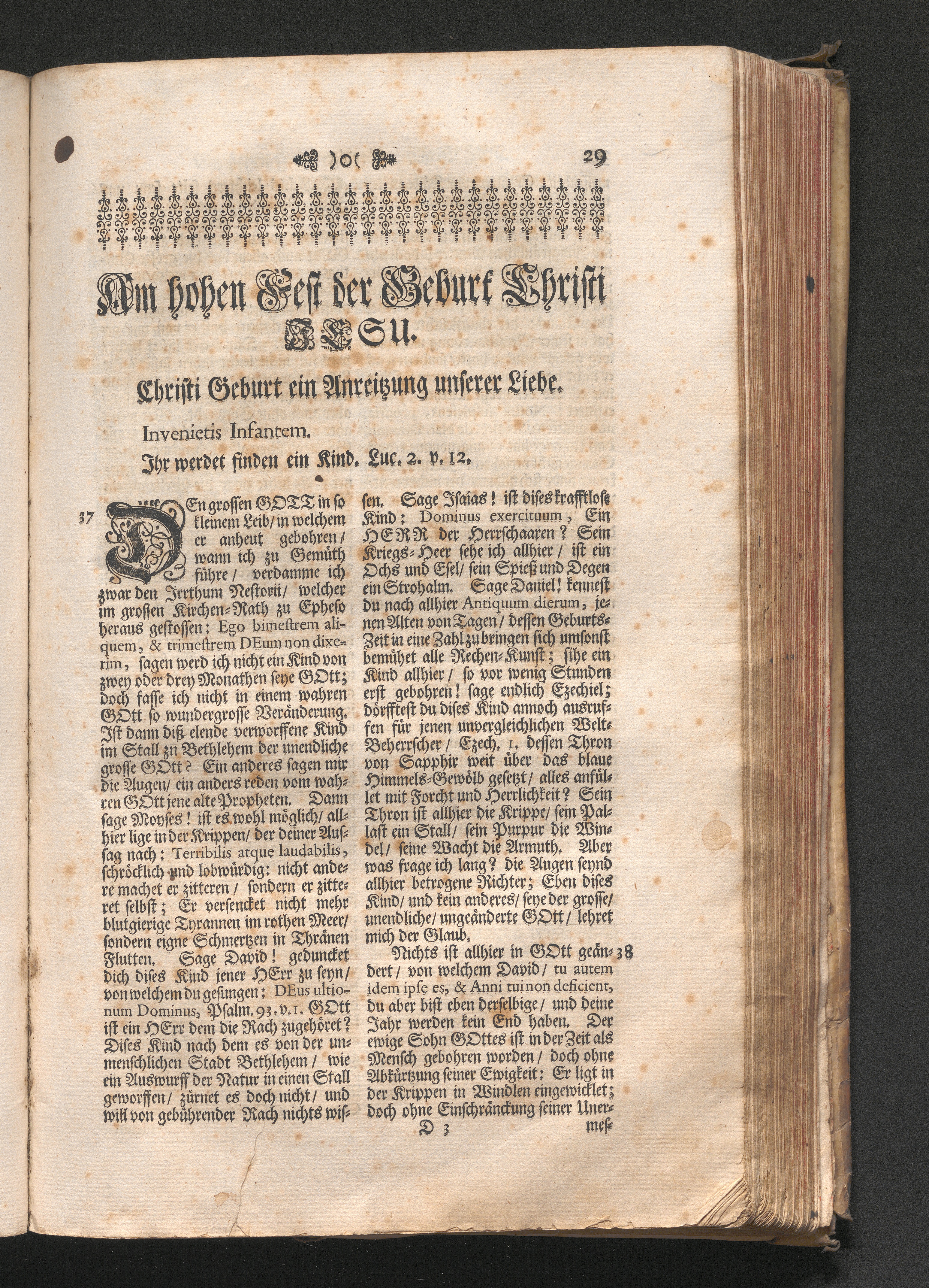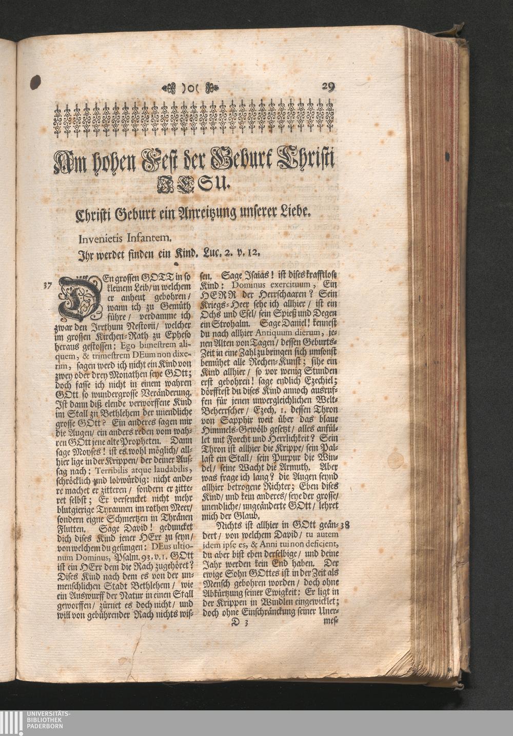 Am hochen Fest der Geburt Christi Jesu. Jnhalt. Christi Geburt ein Anreitzung unserer[...]