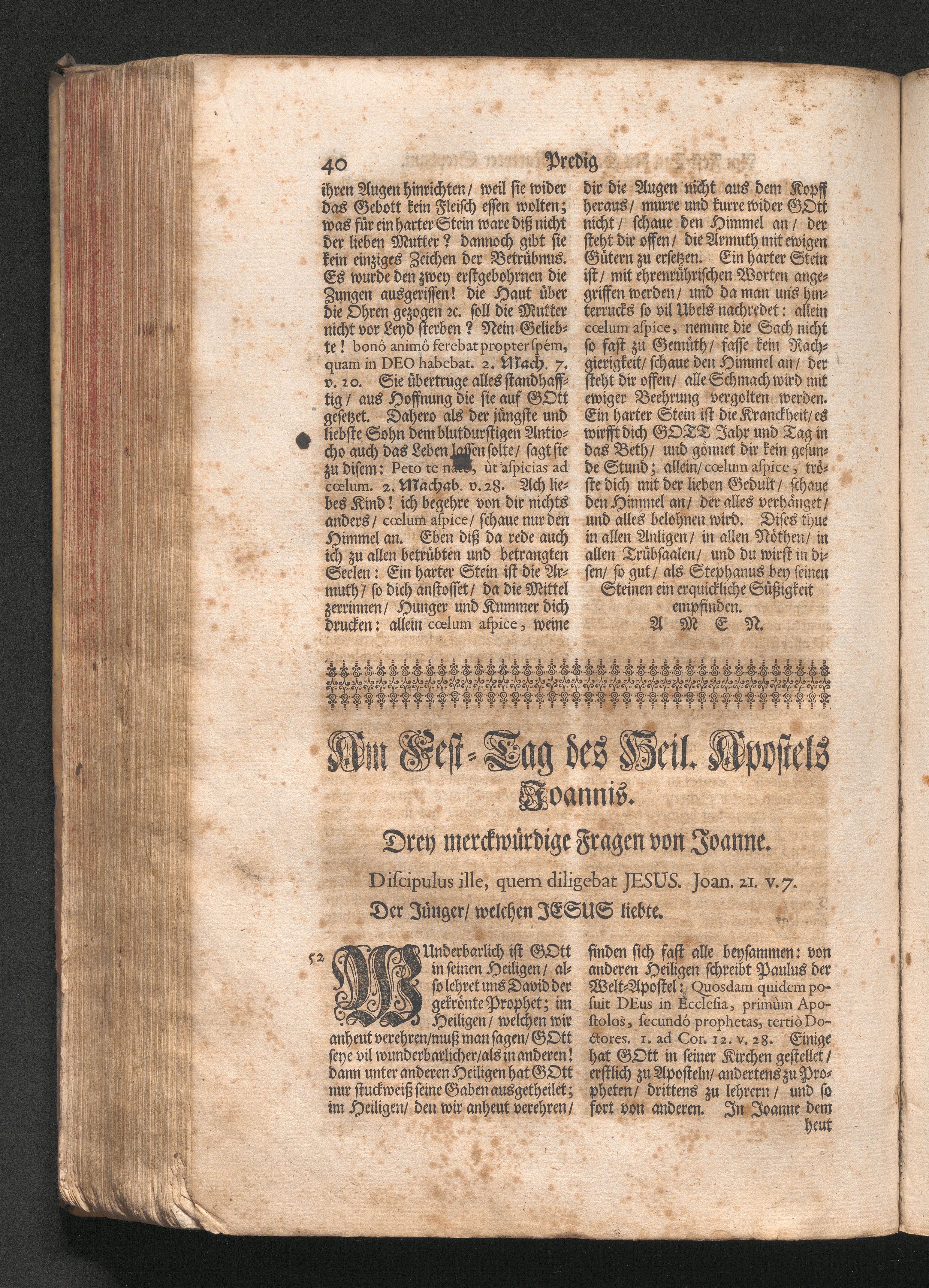 Am Fest des H. Apostels Joannis. Jnhalt. Drey merckwürdige Fragen von Joanne. Discipulus[...]