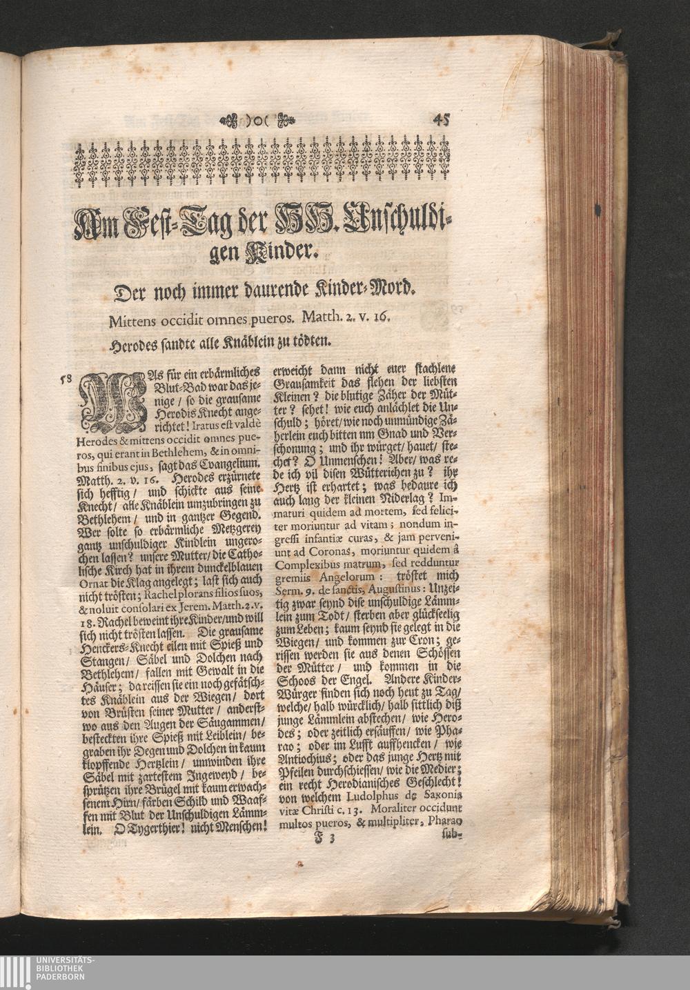 Am Fest der HH. unschuldigen Kinder. Jnhalt. Der noch immer daurende Kinder-Mord.[...]
