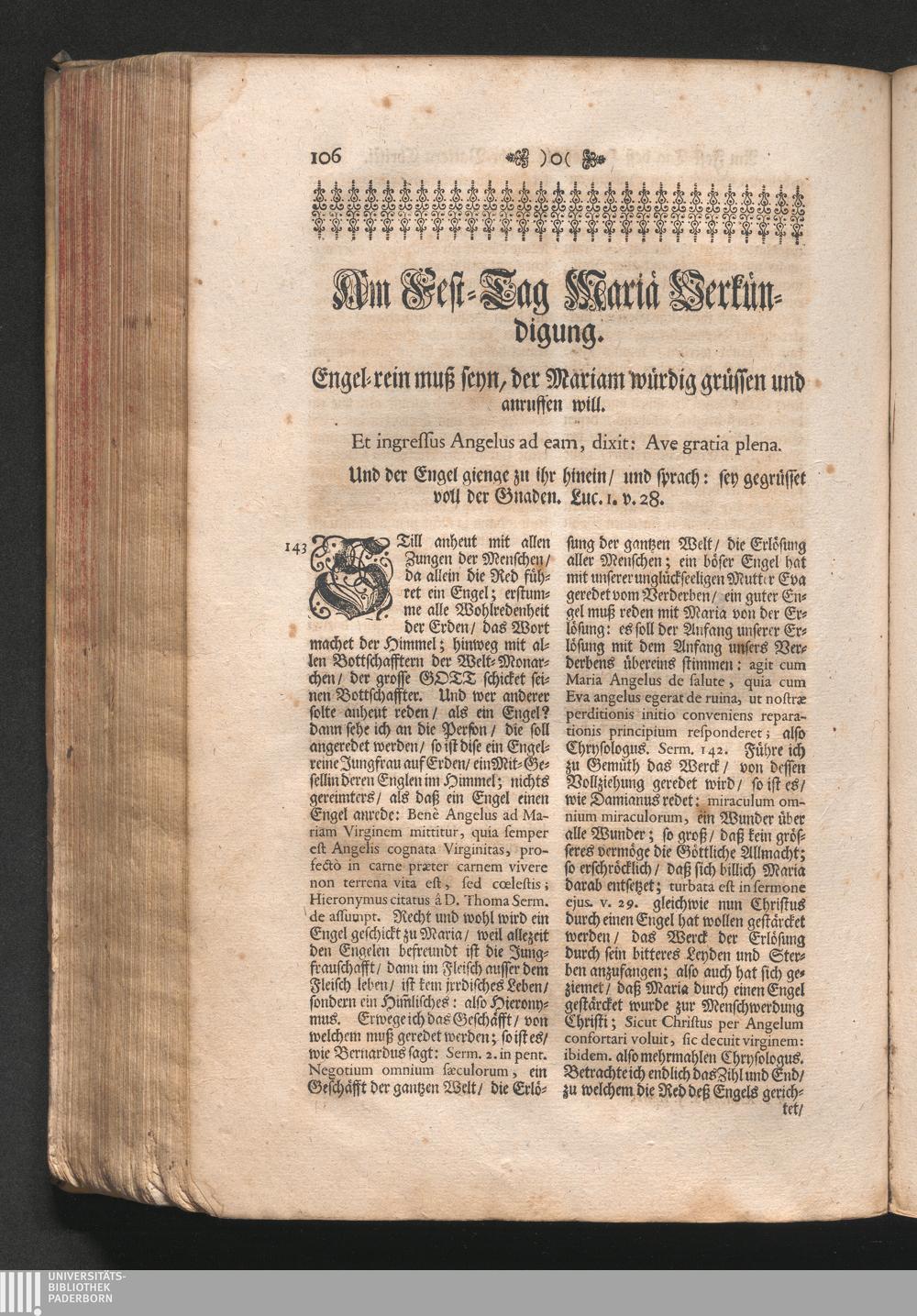 Am Fest Mariä Verkündigung. Jnhalt. Engel rein muß seyn/ der Mariam würdig grüssen/[...]