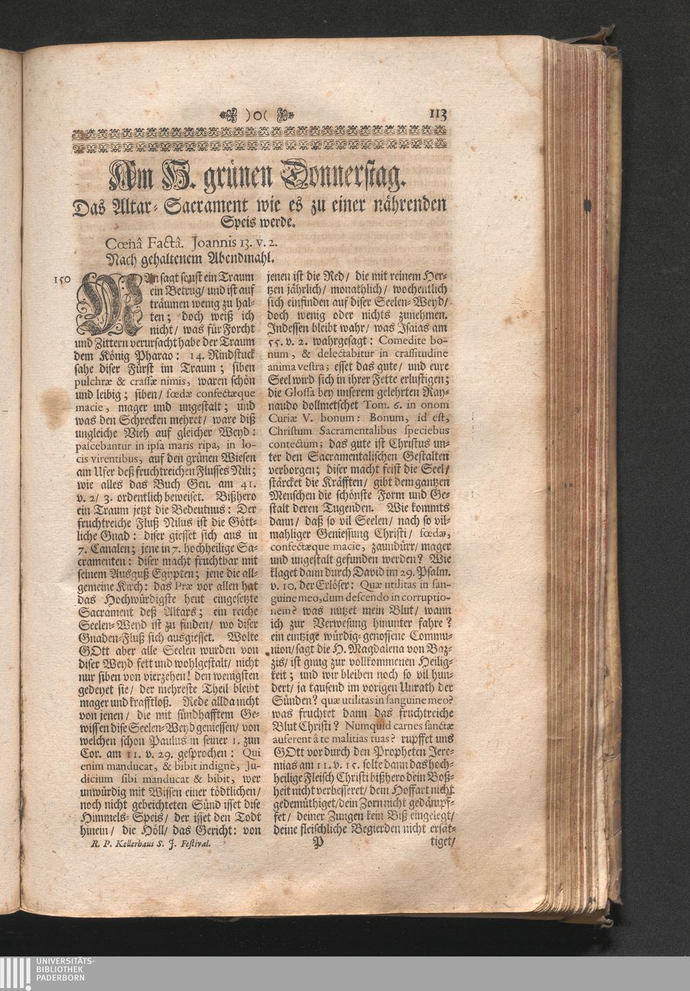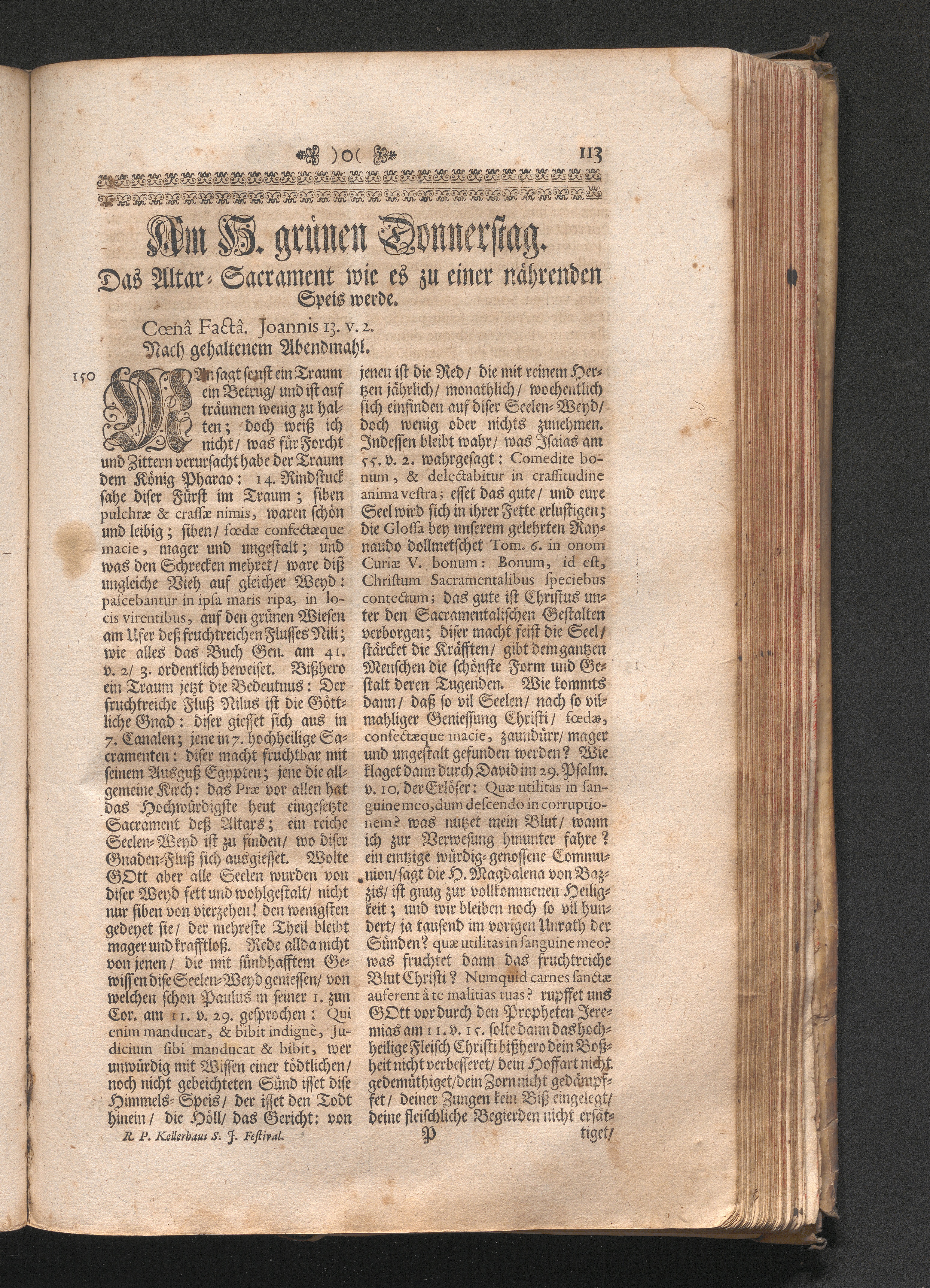Am H. grünen Donnerstag. Jnhalt. Das Altar-Sacrament wie es zu einer nehrenden Speiß[...]