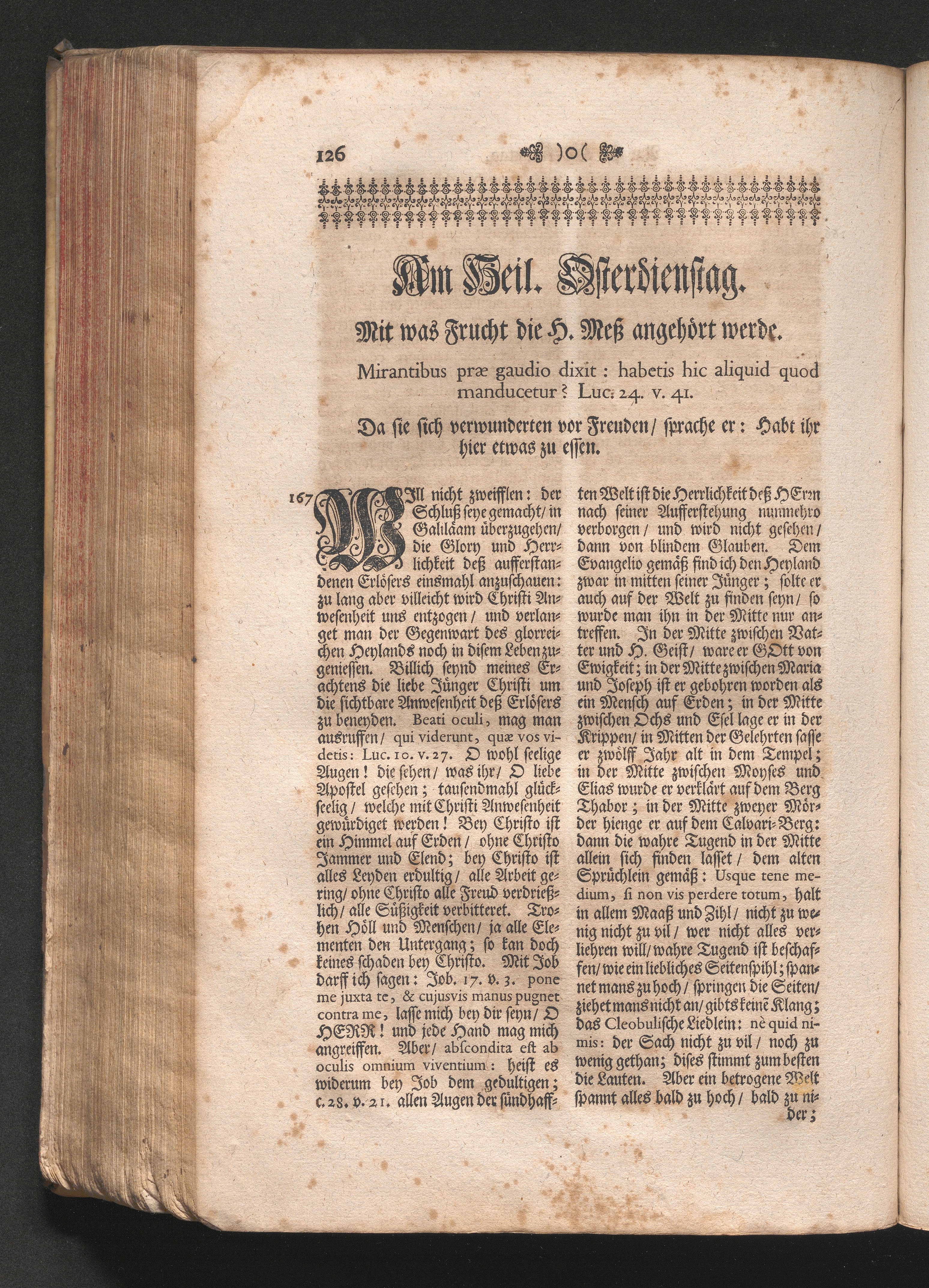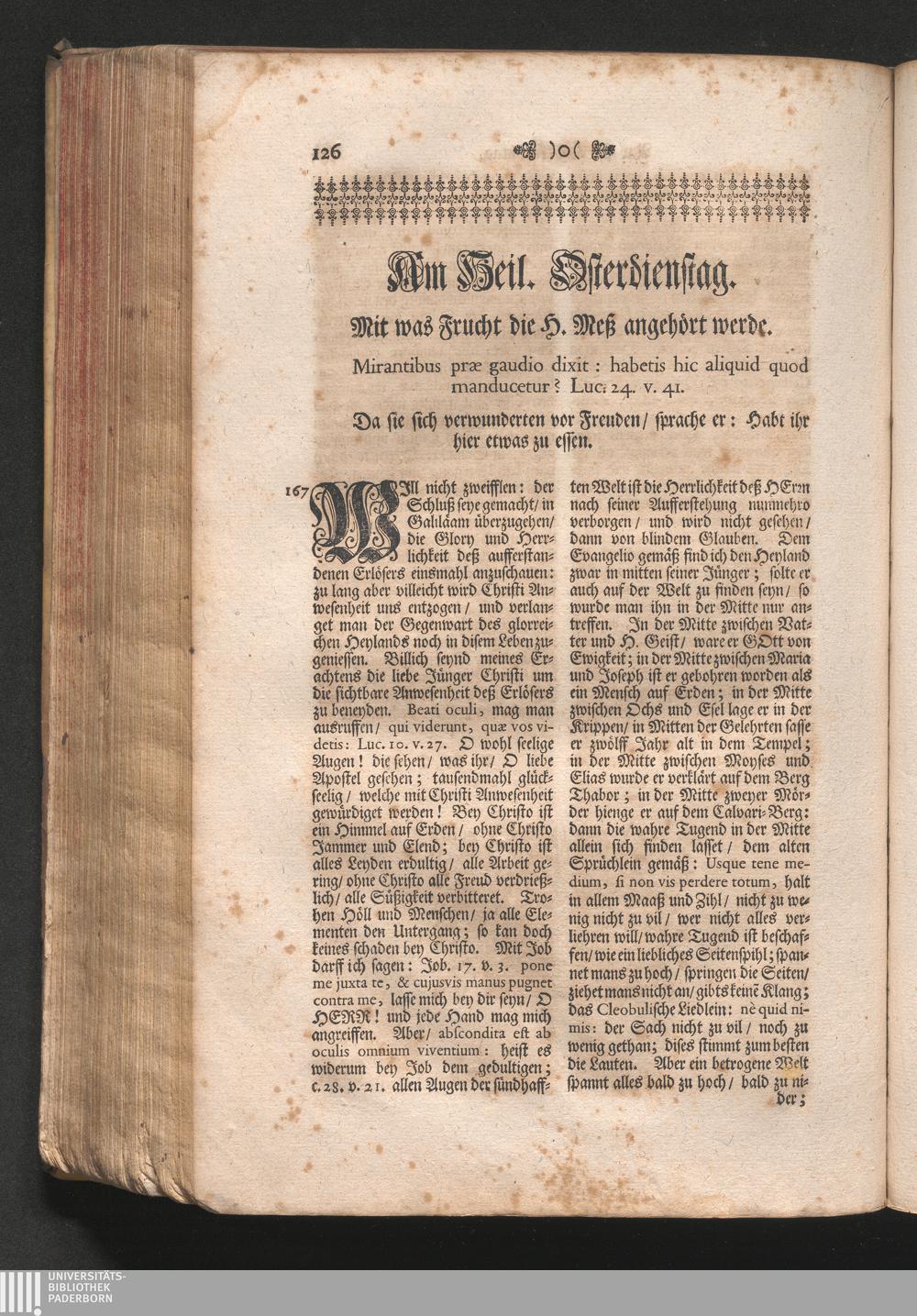 Am H. Oster-Dienstag. Jnhalt. Mit was Frucht die H. Meß angehöret werde. Mirantibus[...]