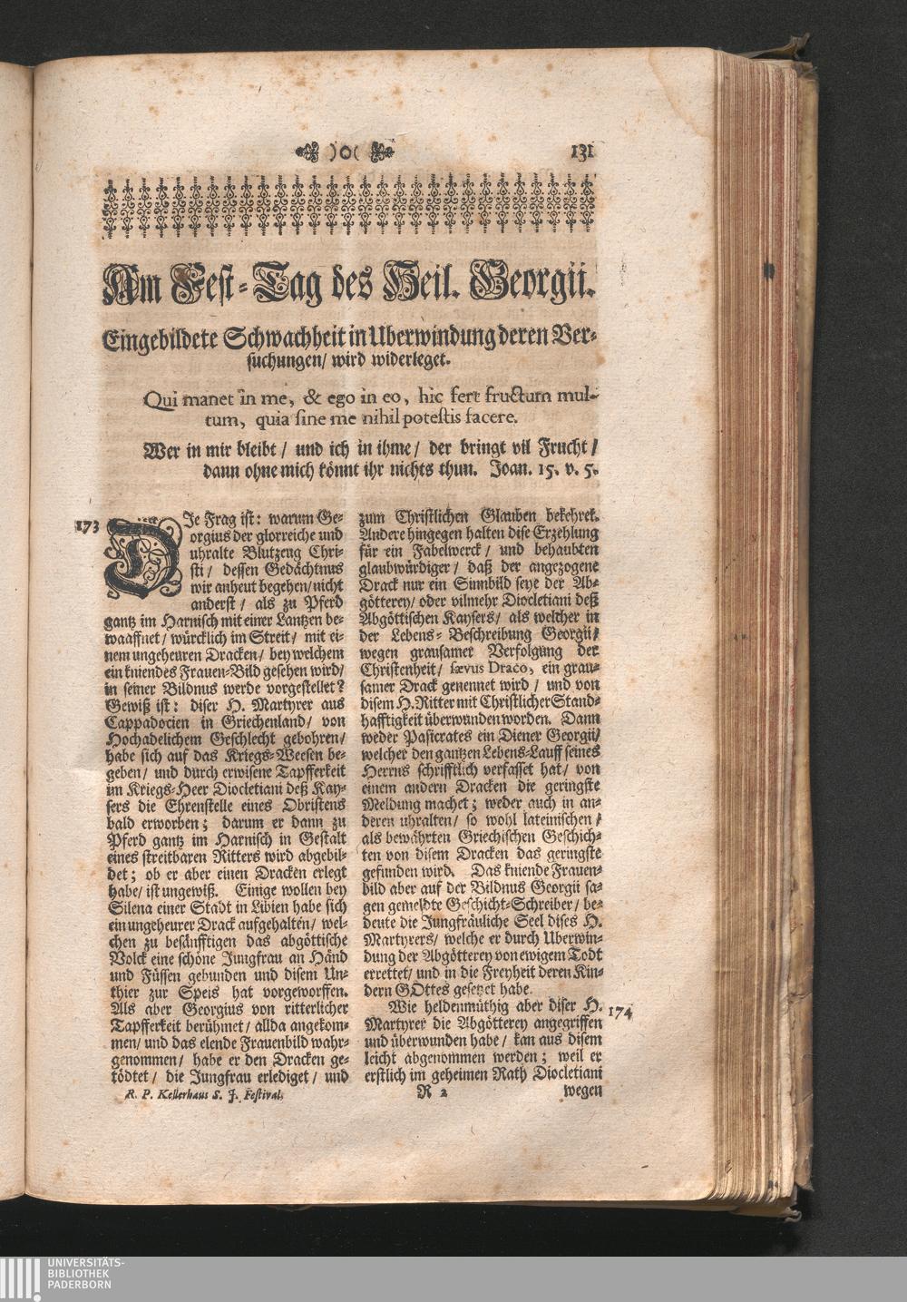 Am Fest des H. Georgij. Jnhalt. Eingebildete Schwachheit in Uberwindung der Versuchungen[...]