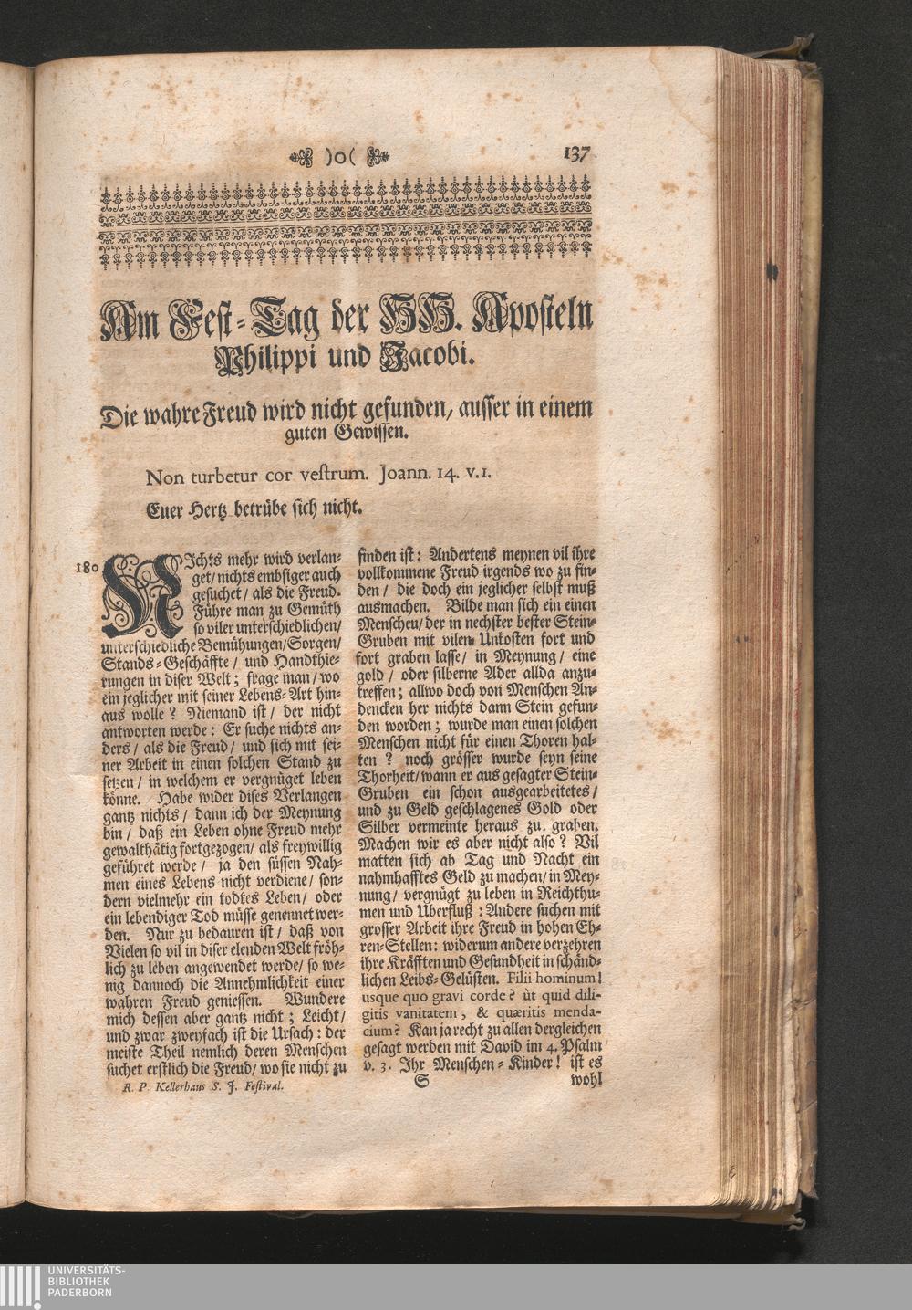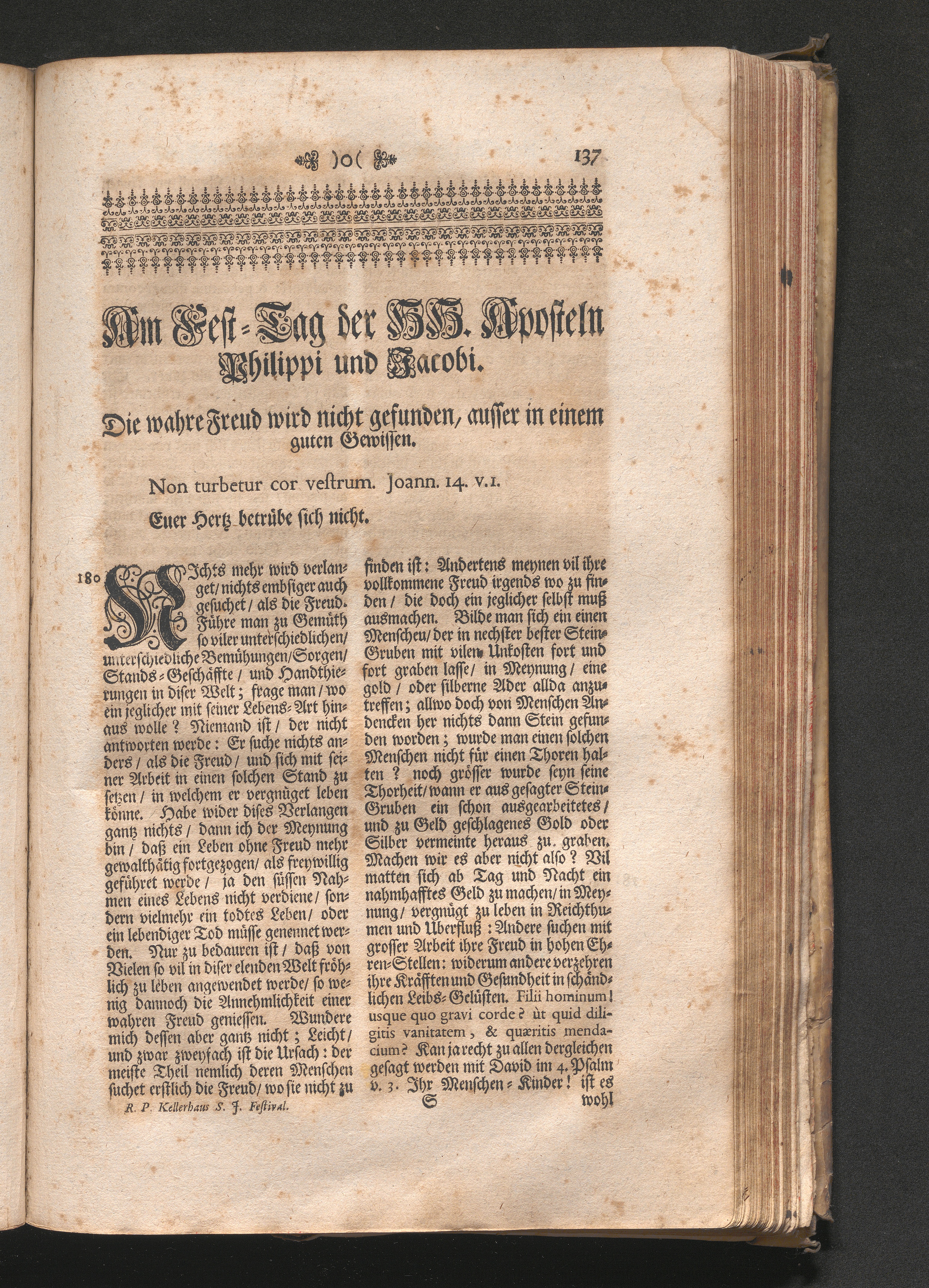 Am Fest der HH. Aposteln Philippi und Jacobi. Jnhalt. Wahre Freud wird nit gefunden[...]