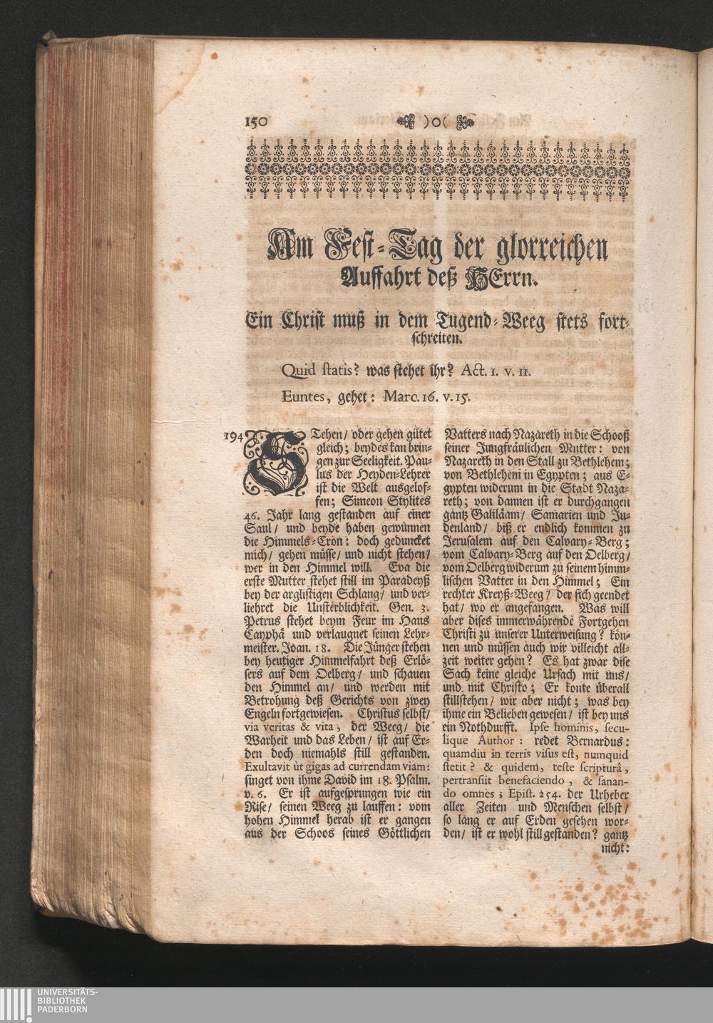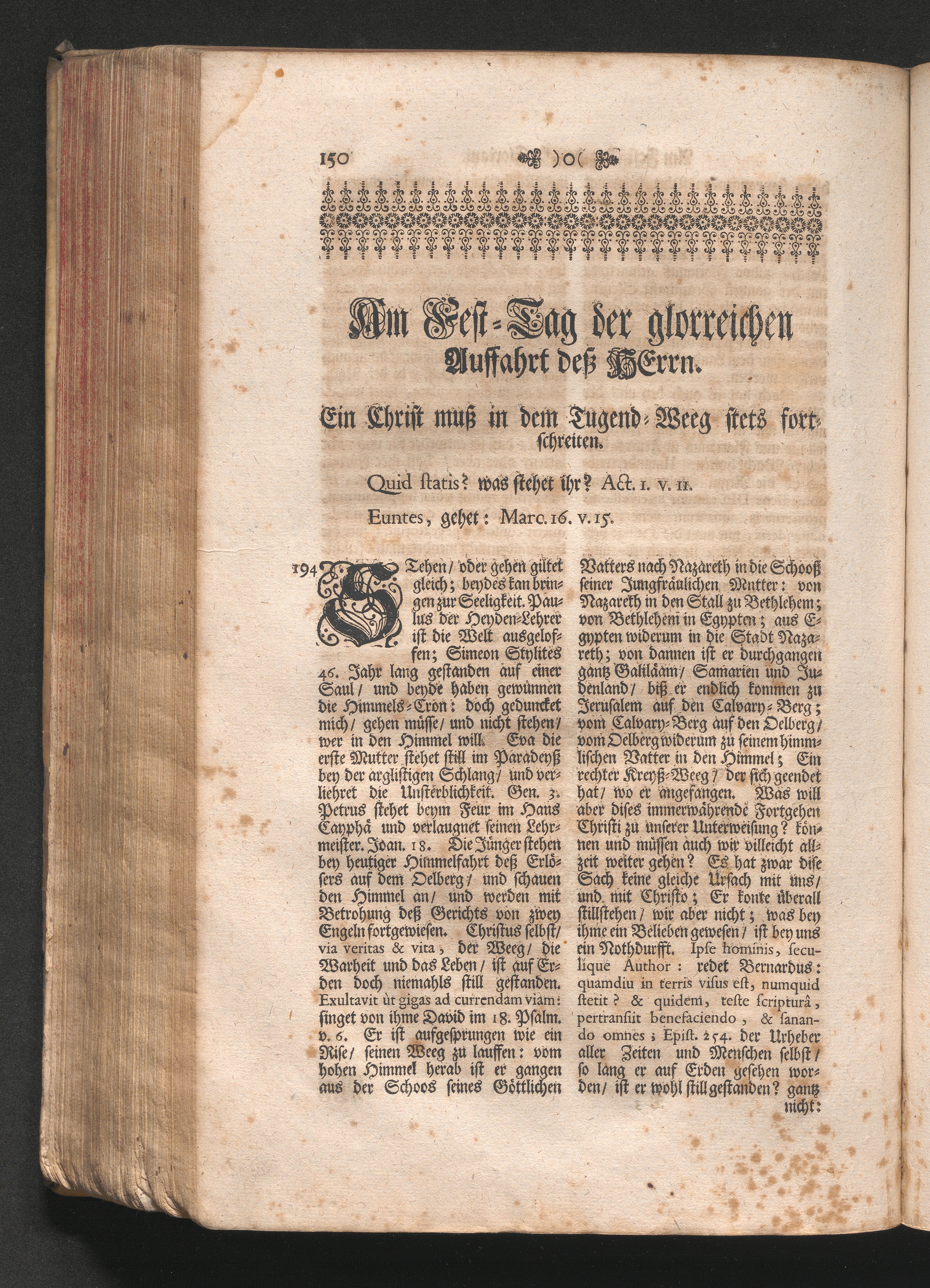 Am Fest der glorreiche[n] Auffarth des Herrns. Jnhalt. Ein Christ muß in dem Tugend-Weg[...]