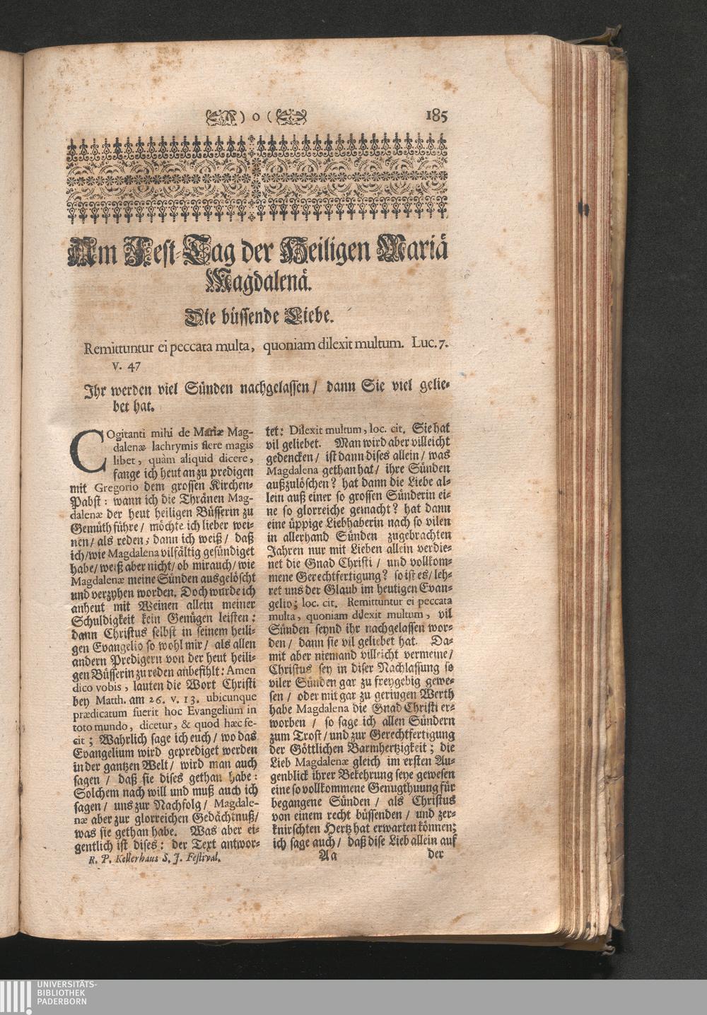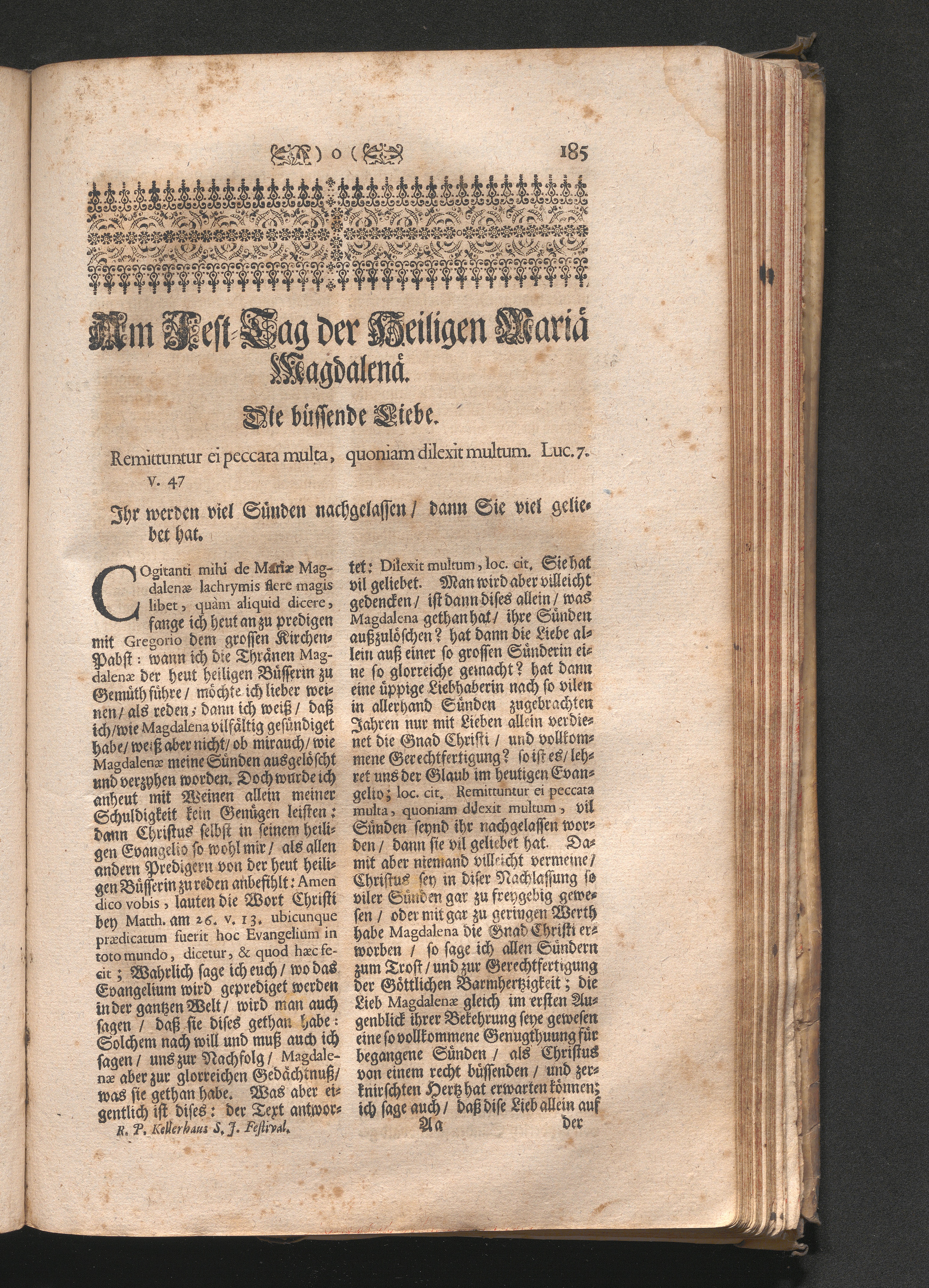 Am Fest der H. Maria Magdalenä. Jnhalt. Die büssende Liebe. Remittuntur ei peccata[...]