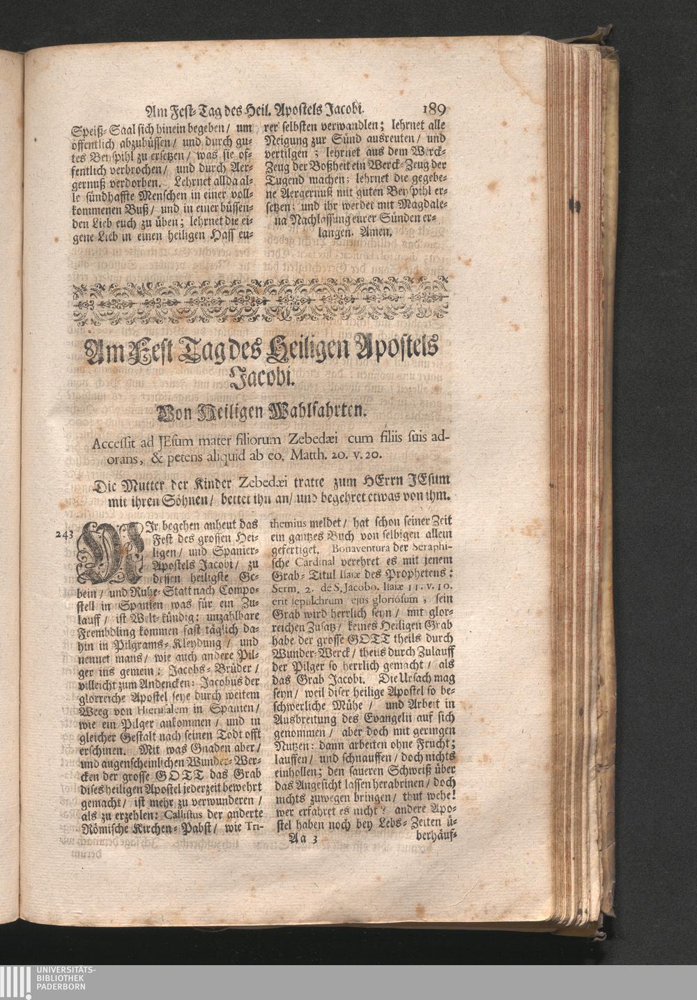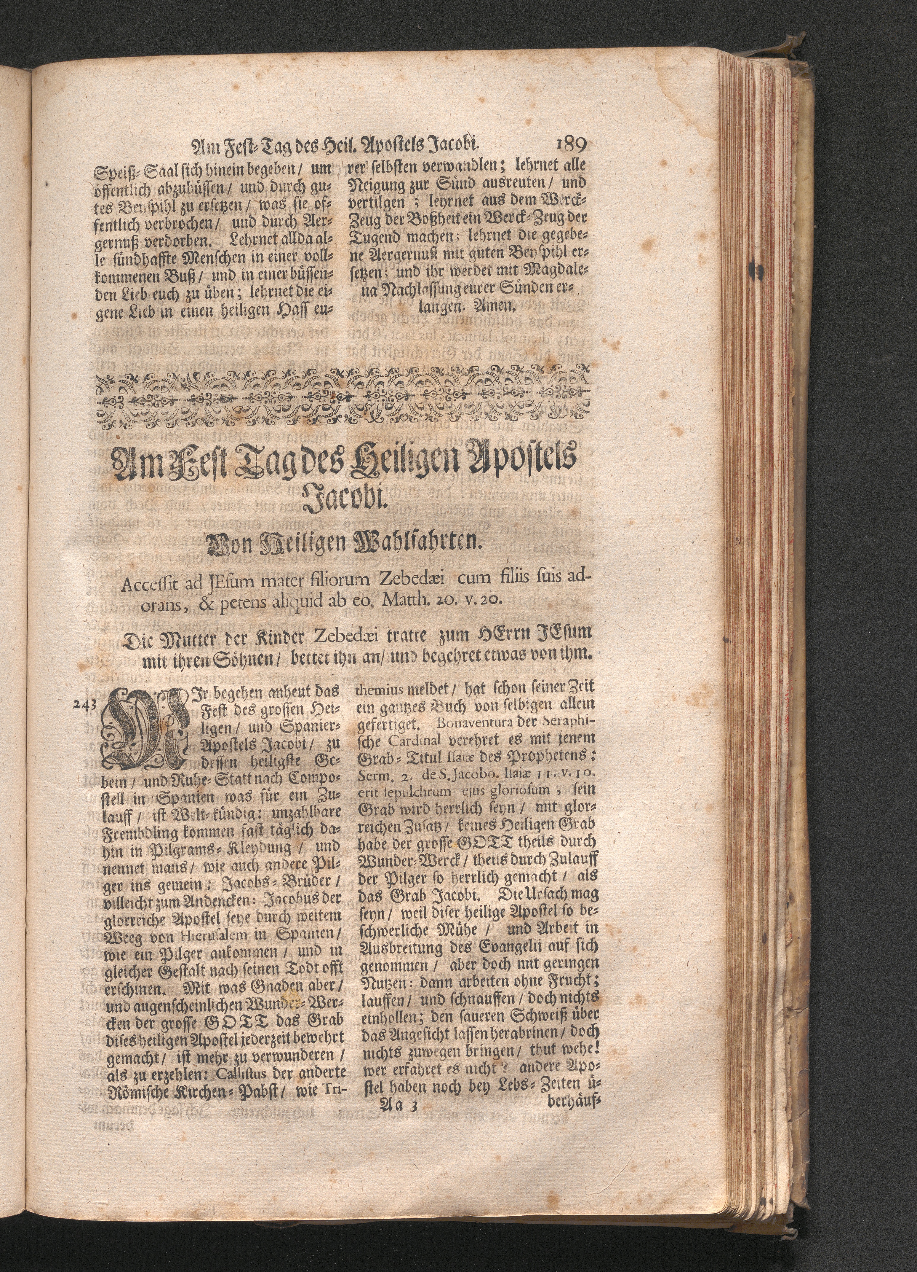 Am Fest des H. Apostels Jacobi. Jnhalt. Vom heiligen Wallfahrten. Accessit ad Jesum[...]