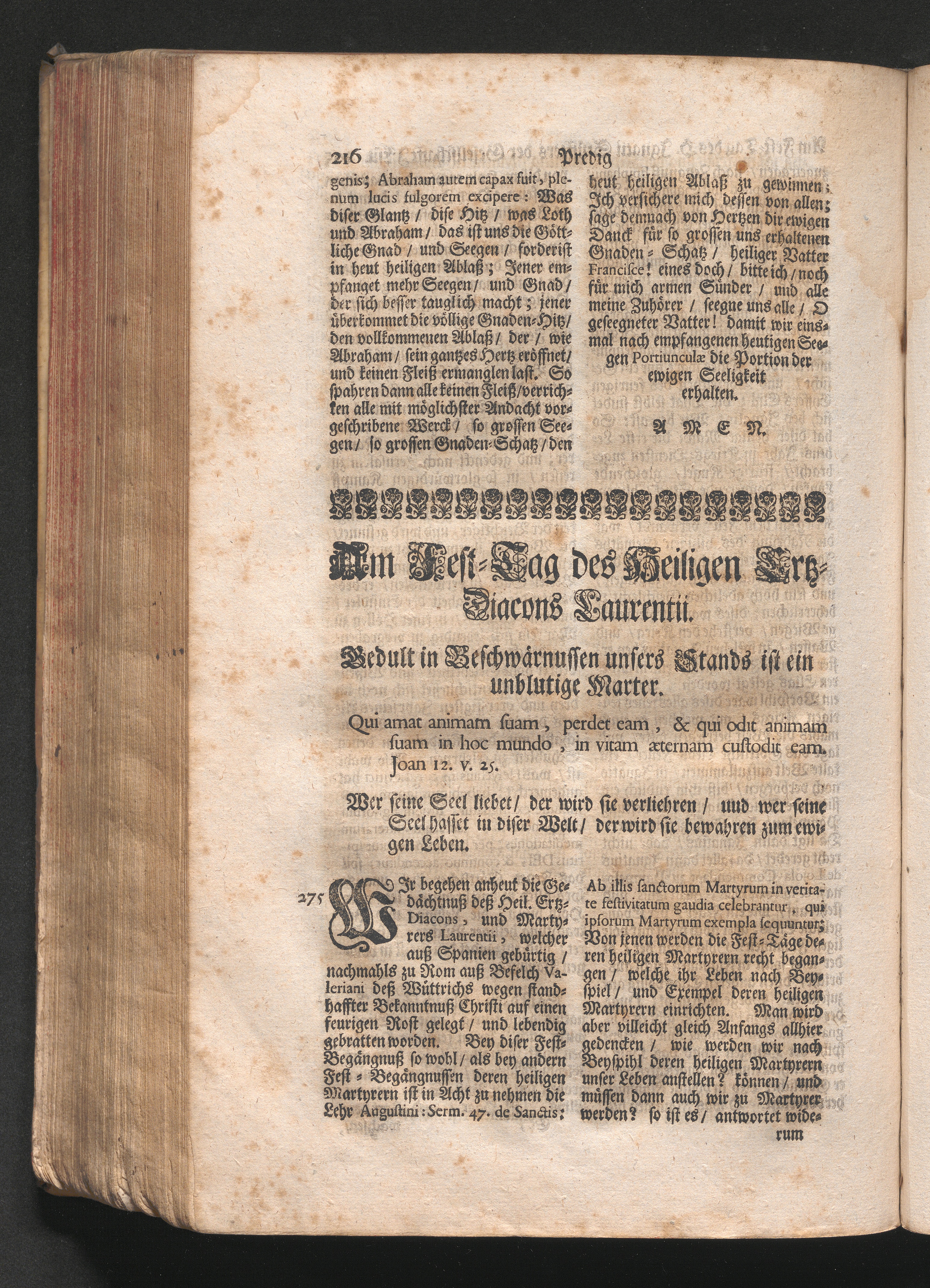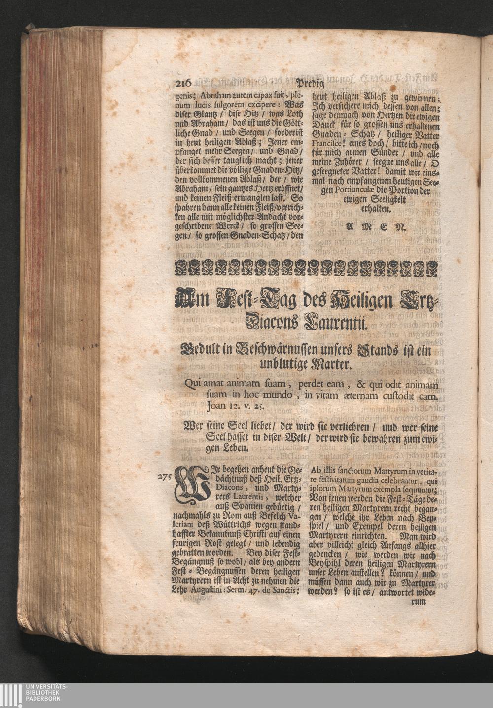 Am Fest des H. Ertz-Diaconi Laurentij. Jnhalt. Gedult in Beschwernussen unseres Stands[...]