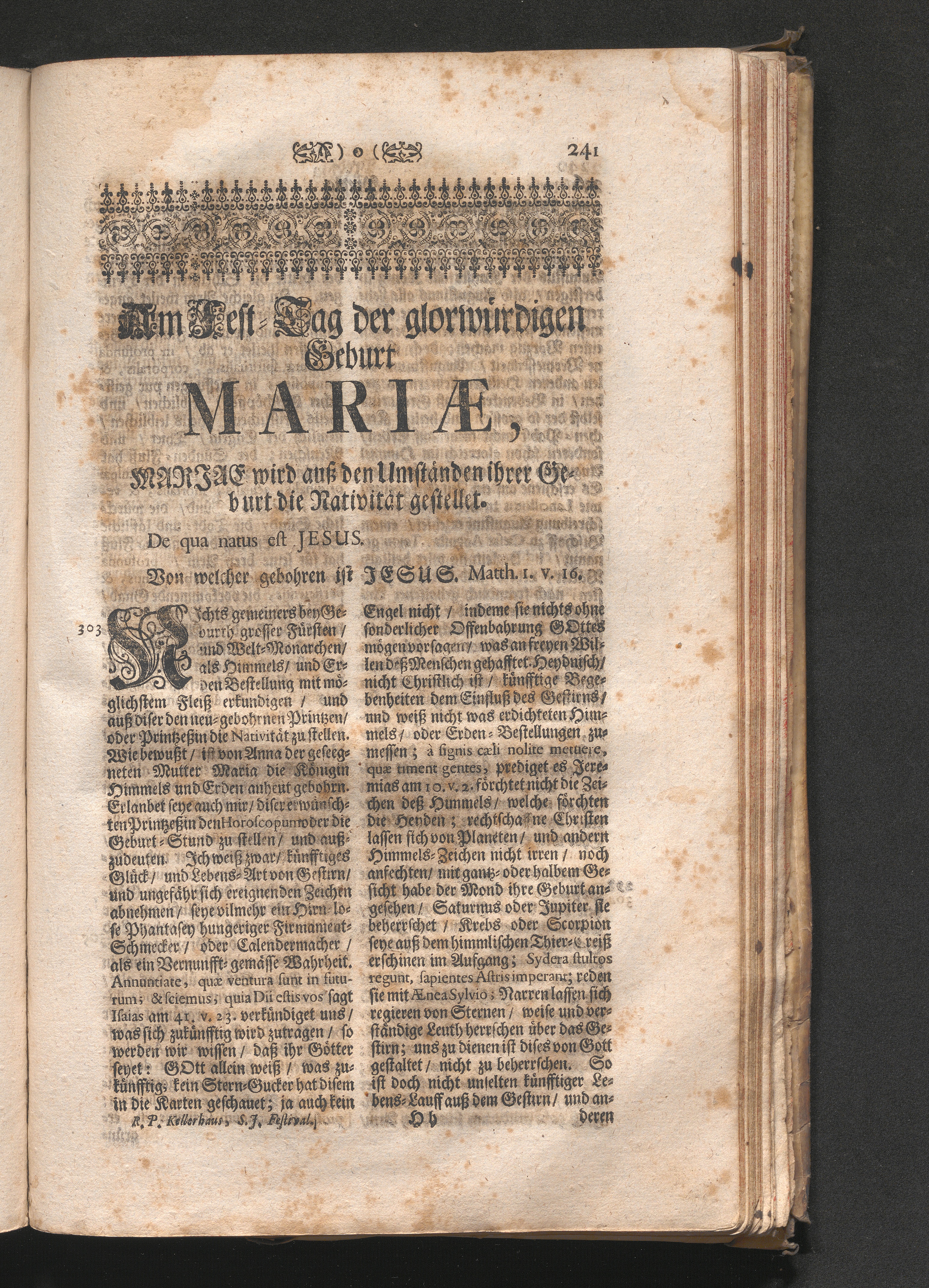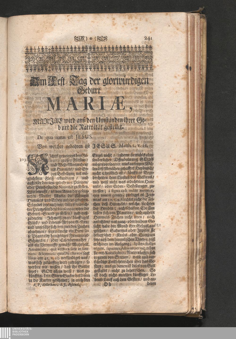 Am Fest der glorreichen Geburth Mariä. Jnhalt. Mariæ wird aus den Umbständen ihrer[...]