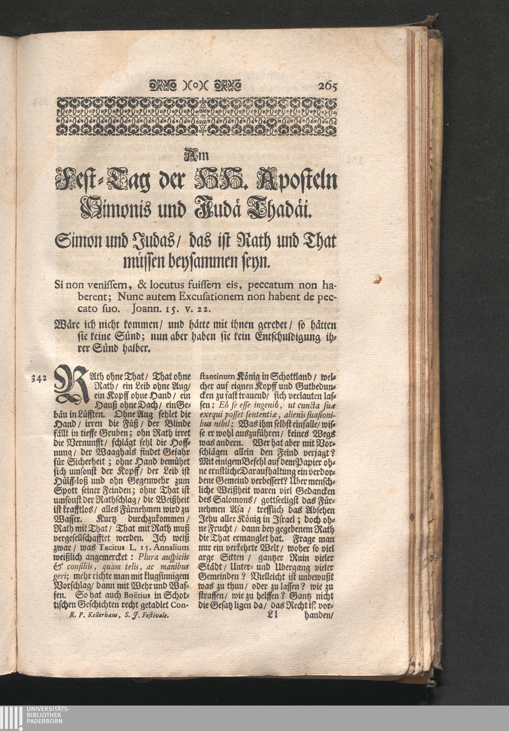 Am Fest der HH. Aposteln Simonis und Judä Thadäi. Jnhalt. Simon und Judas/ das ist[...]