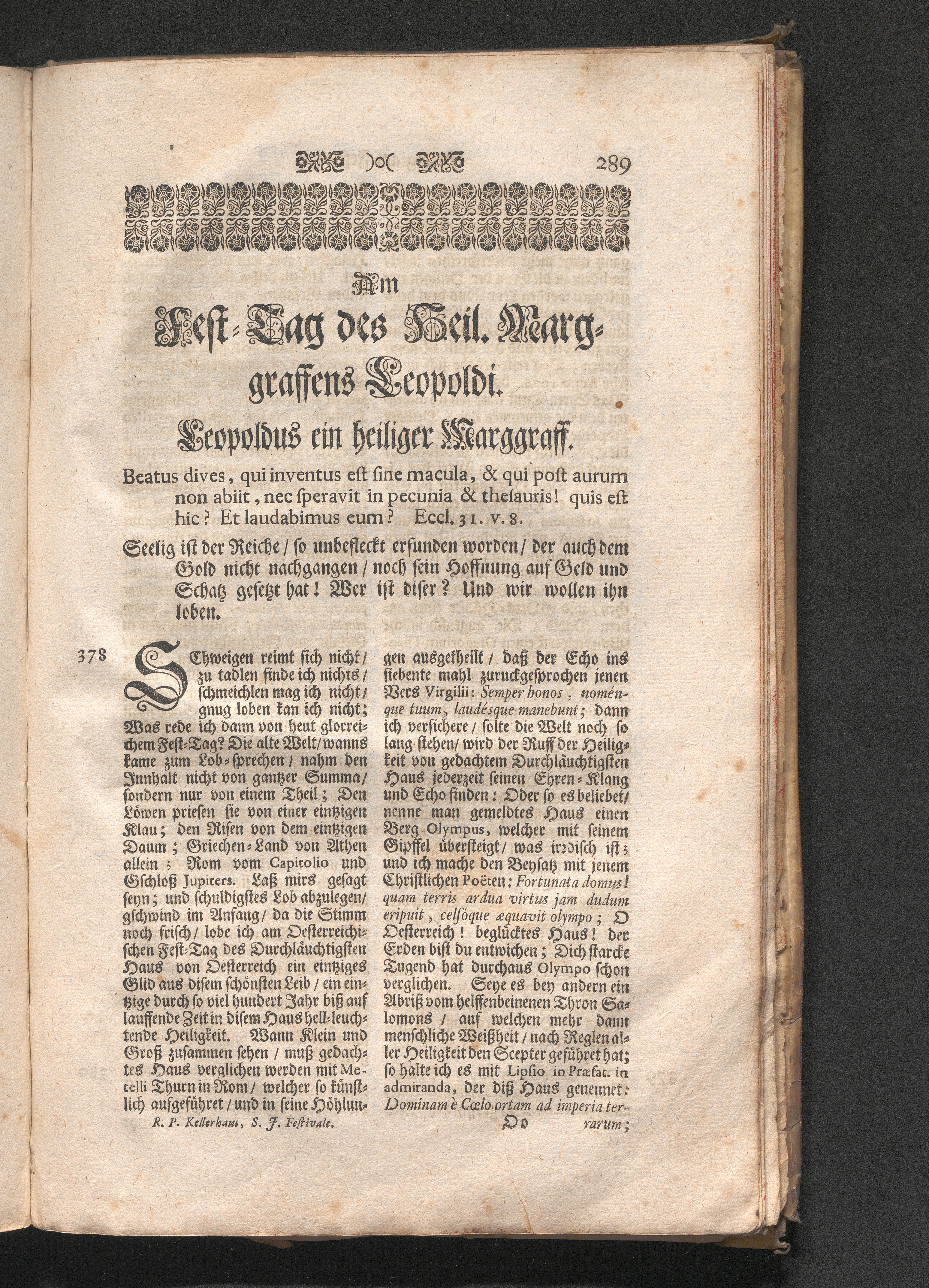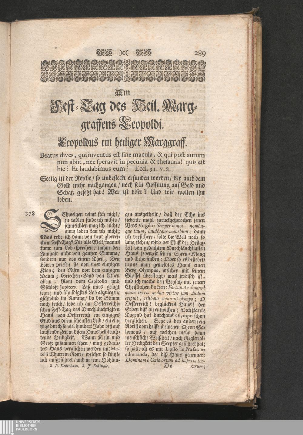 Am Fest des H. Marggrafens Leopoldi. Jnhalt. Leopoldus ein heiliger Margggraf. Beatus[...]