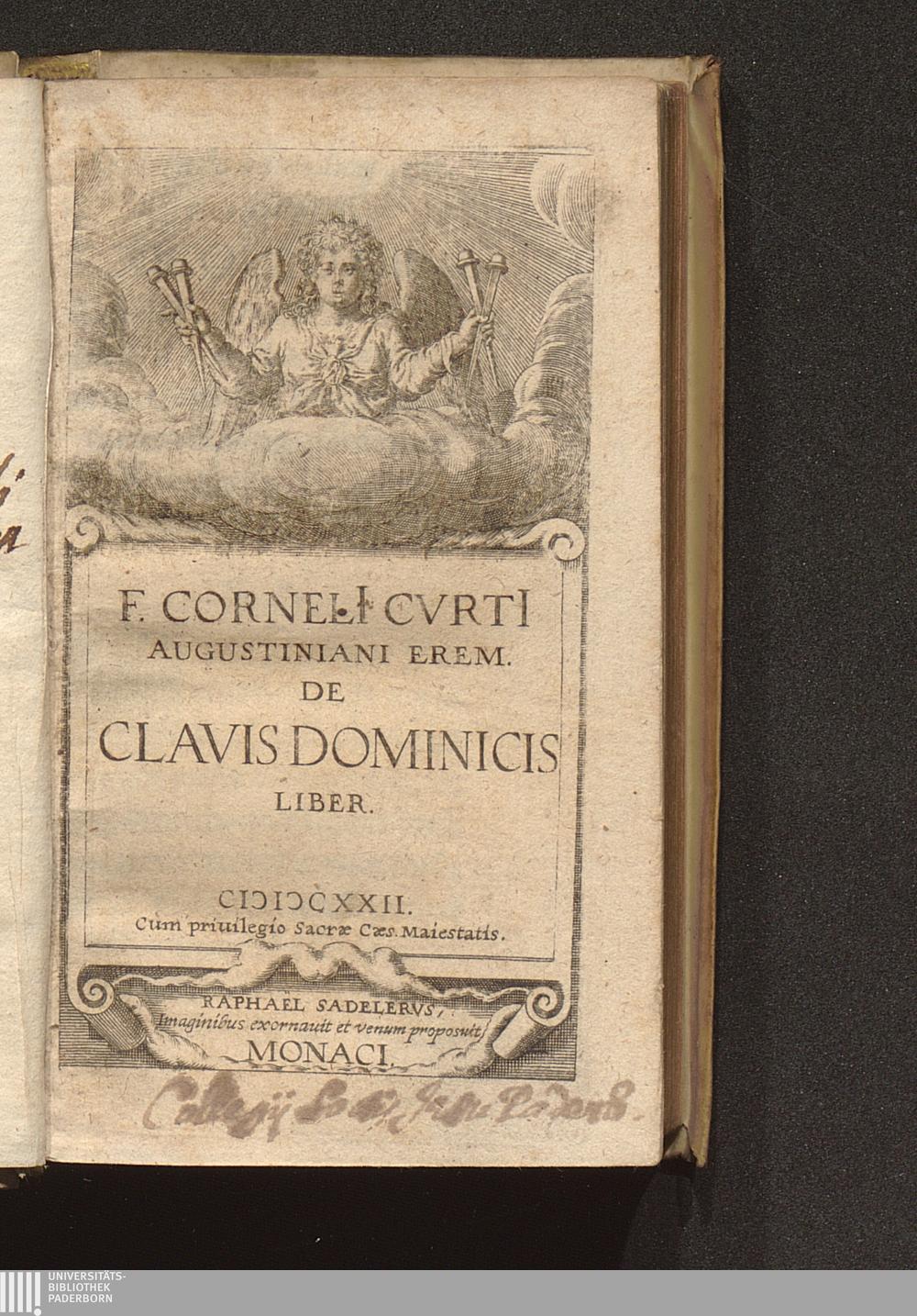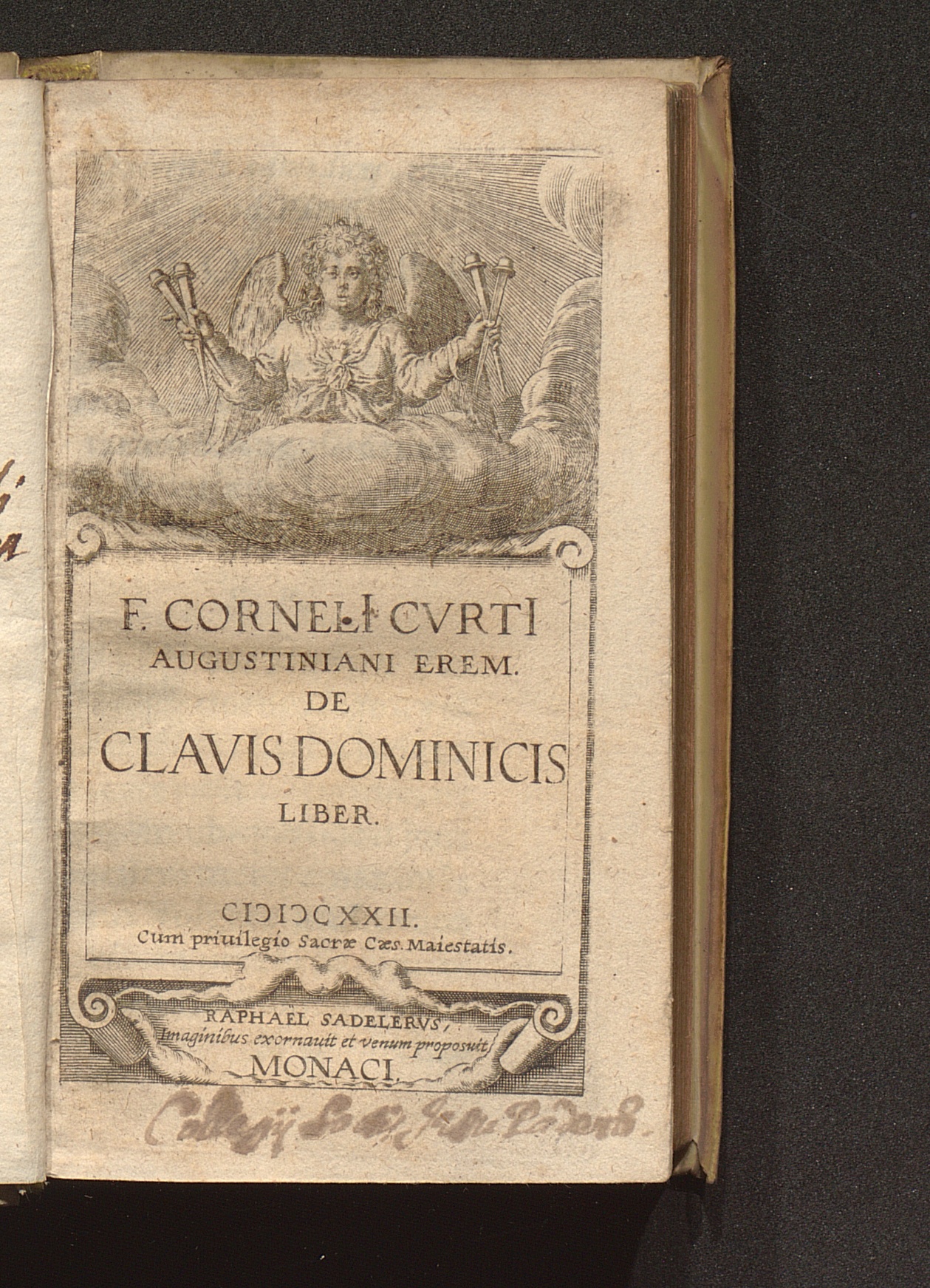F. Corneli[i] Cvrt[i] Augustiniani Erem. De Clavis Dominicis Liber / Raphael Sadelervs, Imaginibus exornauit et venum proposuit