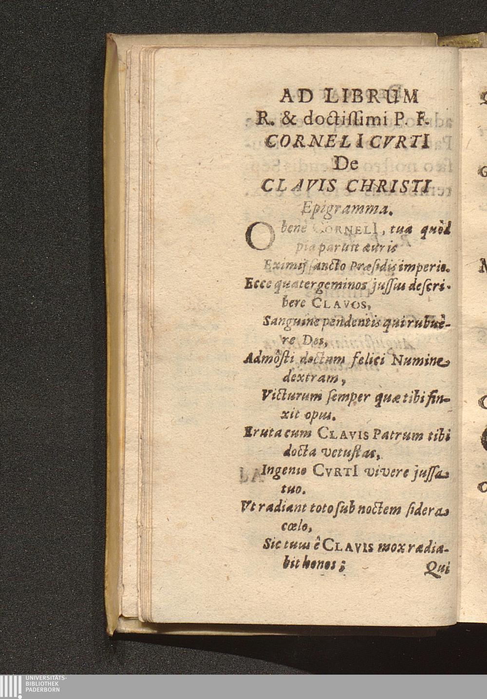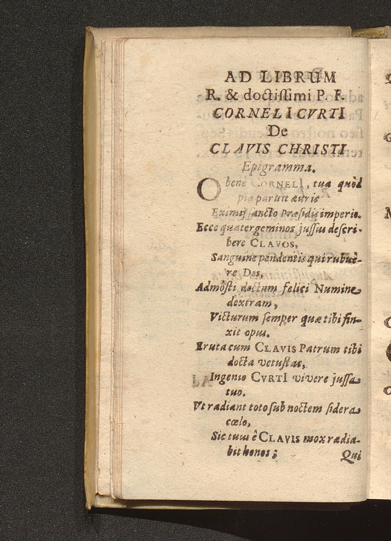 Ad Librum R. & doctissimi P. I. Corneli[i] Cvrti[i] De Clavis Christi Epigramma.