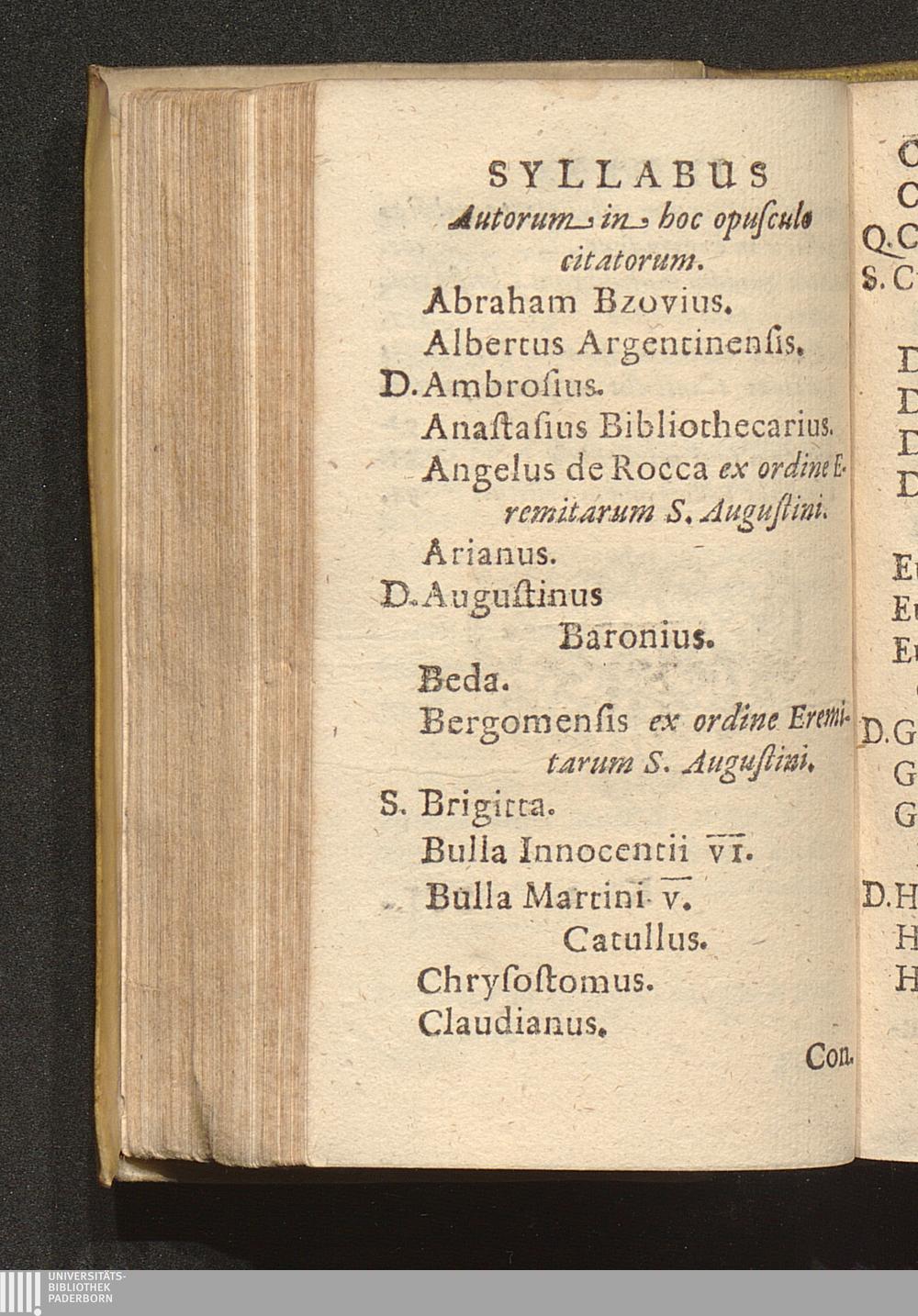 Syllabus Autorum in hoc opusculo citatorum.