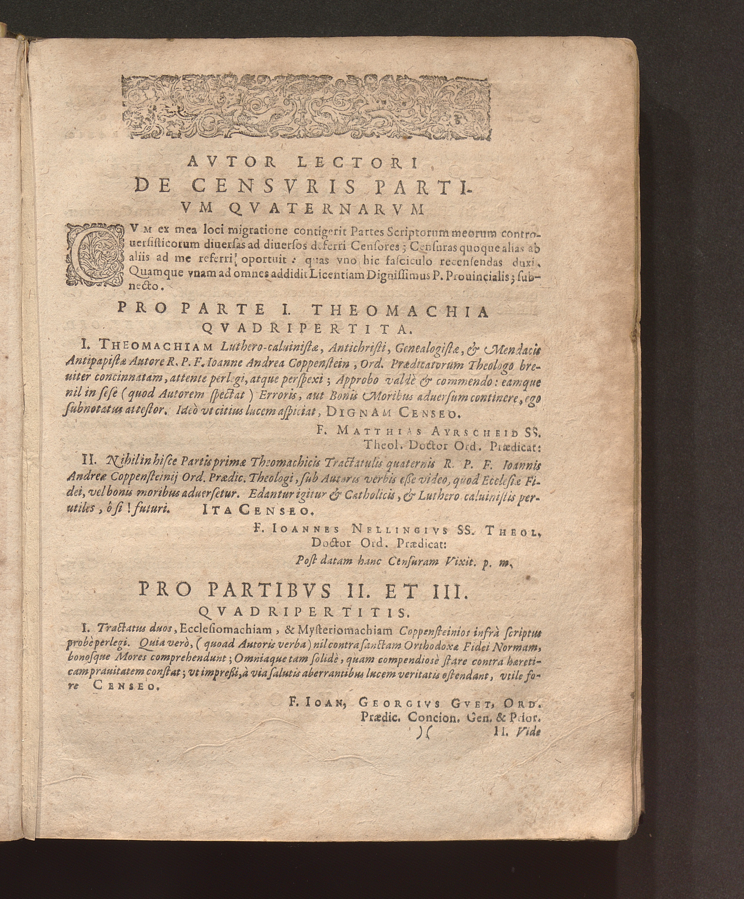 Ex Illvstrissimo Cardinali Bellarmino Epitome Controuersiarum Omnium huius Aeui Lvthero-Calvinisticarvm Sub diuersis Titulis bis Quadripertitis digestarum / Avtore F. Ioanne Andrea Coppenstein Ordinis Praedicatorum Theologo, Parocho Heidelbergae