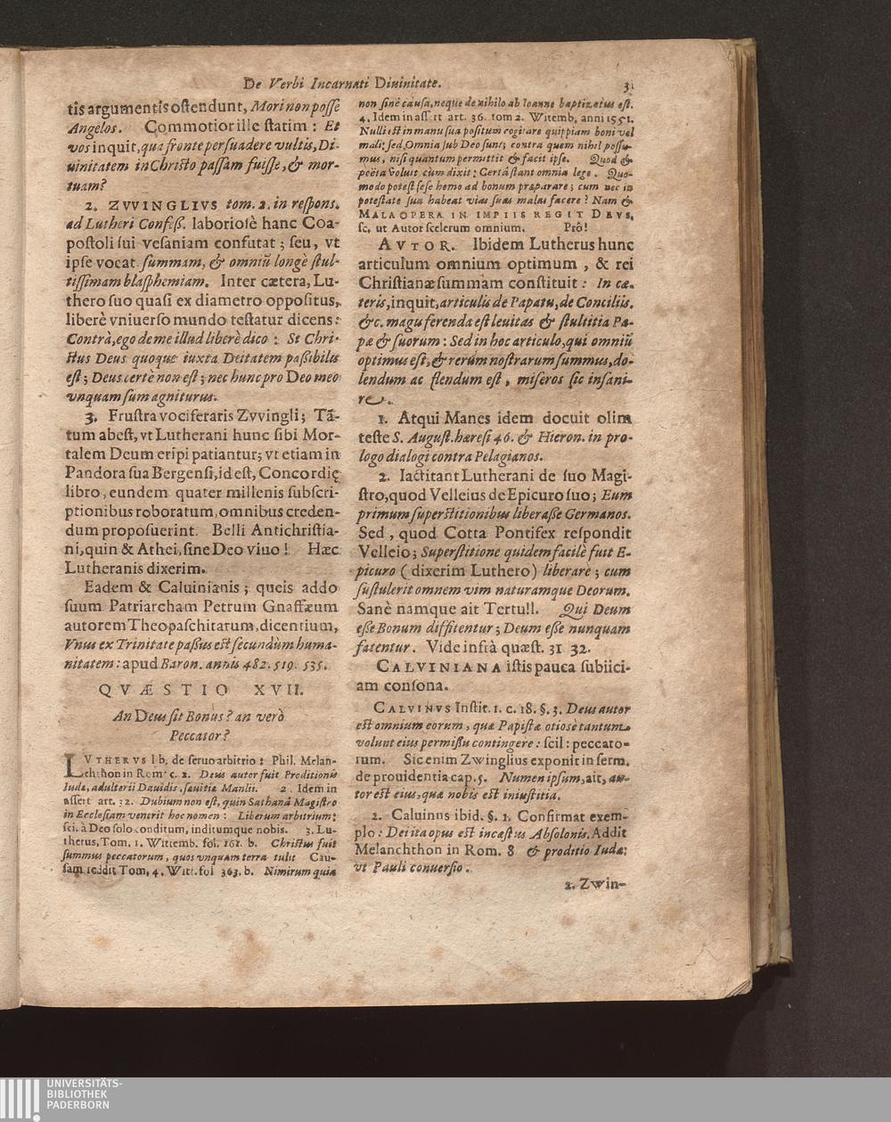 Ex Illvstrissimo Cardinali Bellarmino Epitome Controuersiarum Omnium huius Aeui Lvthero-Calvinisticarvm Sub diuersis Titulis bis Quadripertitis digestarum / Avtore F. Ioanne Andrea Coppenstein Ordinis Praedicatorum Theologo, Parocho Heidelbergae