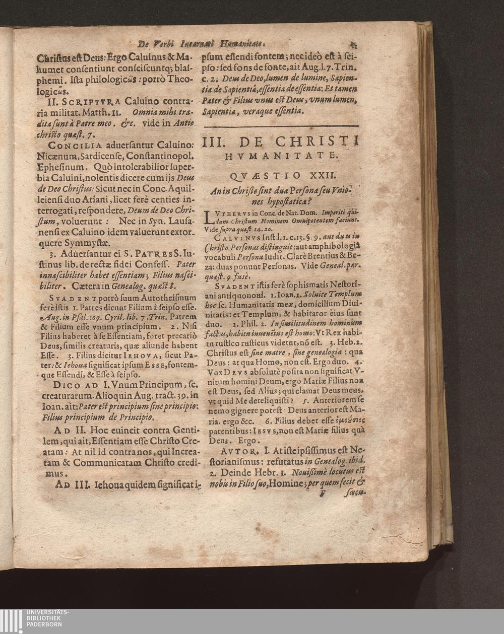 Ex Illvstrissimo Cardinali Bellarmino Epitome Controuersiarum Omnium huius Aeui Lvthero-Calvinisticarvm Sub diuersis Titulis bis Quadripertitis digestarum / Avtore F. Ioanne Andrea Coppenstein Ordinis Praedicatorum Theologo, Parocho Heidelbergae