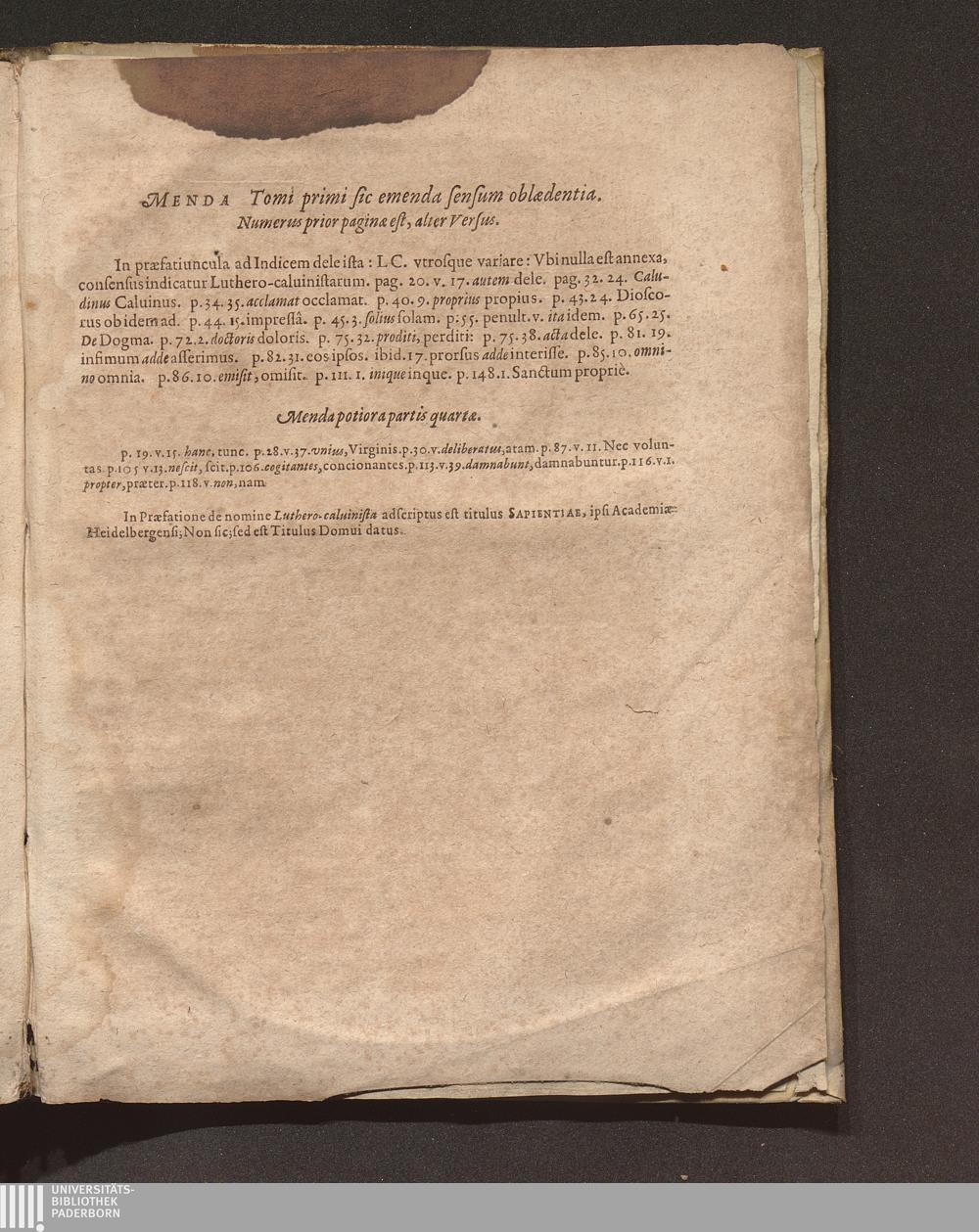 Ex Illvstrissimo Cardinali Bellarmino Epitome Controuersiarum Omnium huius Aeui Lvthero-Calvinisticarvm Sub diuersis Titulis bis Quadripertitis digestarum / Avtore F. Ioanne Andrea Coppenstein Ordinis Praedicatorum Theologo, Parocho Heidelbergae