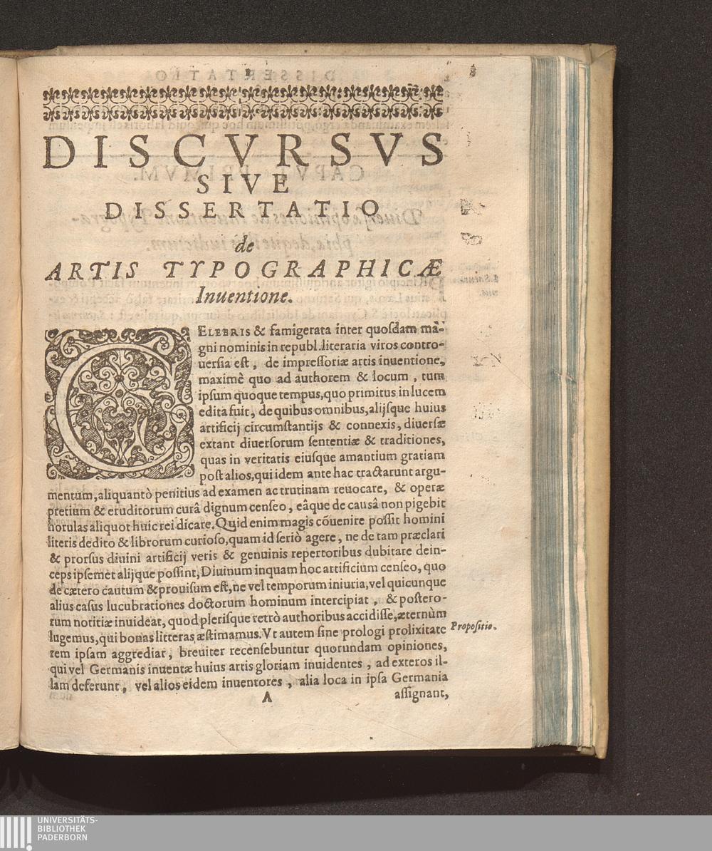 De Ortv Ac Progressv Artis Typographicae Dissertatio Historica : In Qva Praeter alia pleraque Ad Calcographices Negocivm Spectantia De Avctoribvs Et Loco inuentionis praecipuè inquiritur, Proqve Mogvntinis Contra Harlemenses concluditur / A Bernardo A Mallinkrot Decano Monasteriensi ac C. Mindensi