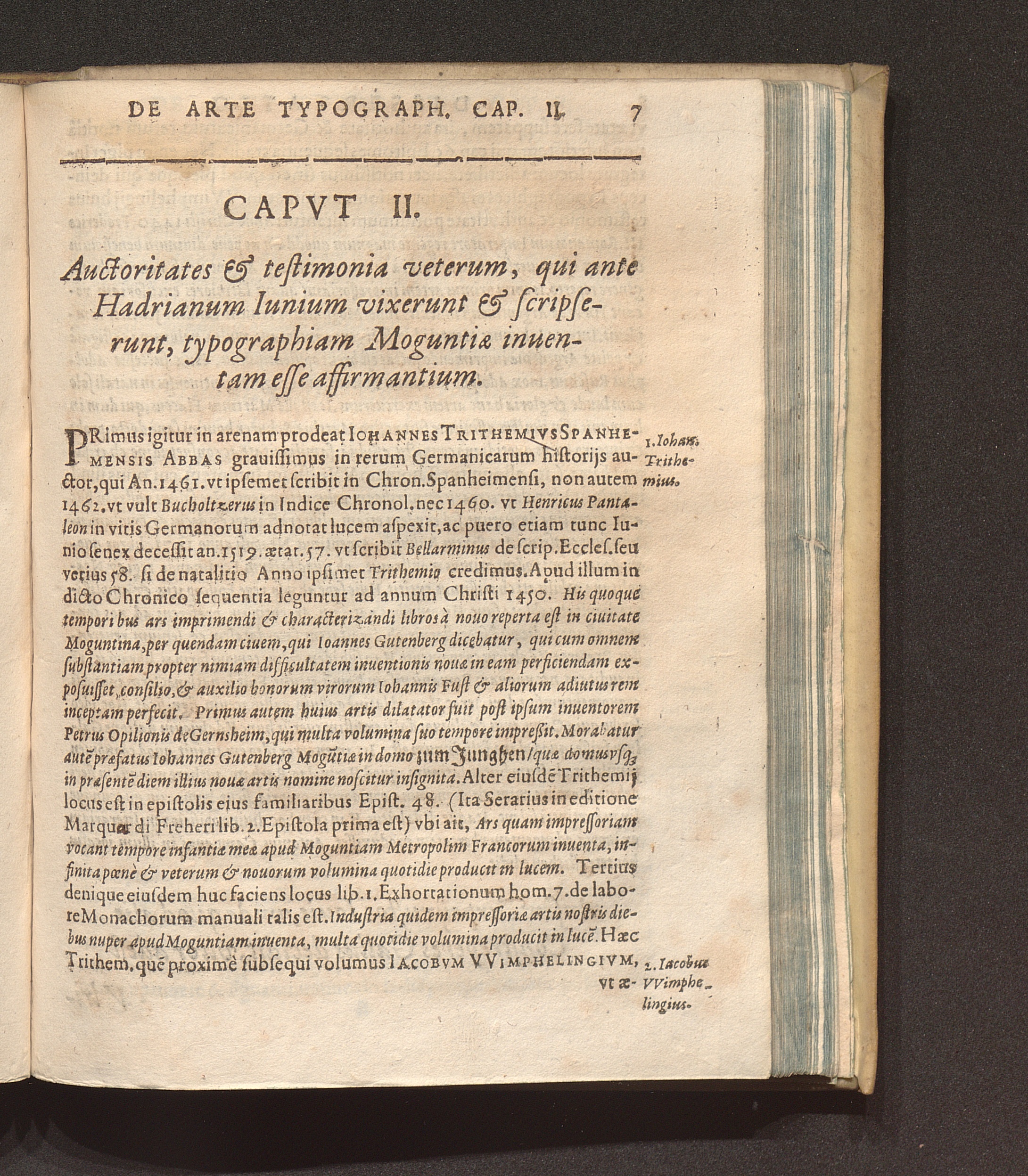 De Ortv Ac Progressv Artis Typographicae Dissertatio Historica : In Qva Praeter alia pleraque Ad Calcographices Negocivm Spectantia De Avctoribvs Et Loco inuentionis praecipuè inquiritur, Proqve Mogvntinis Contra Harlemenses concluditur / A Bernardo A Mallinkrot Decano Monasteriensi ac C. Mindensi