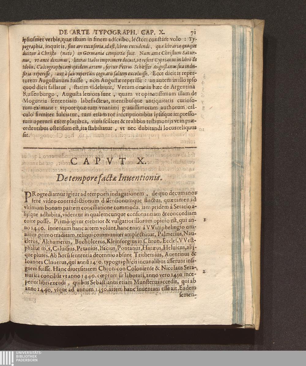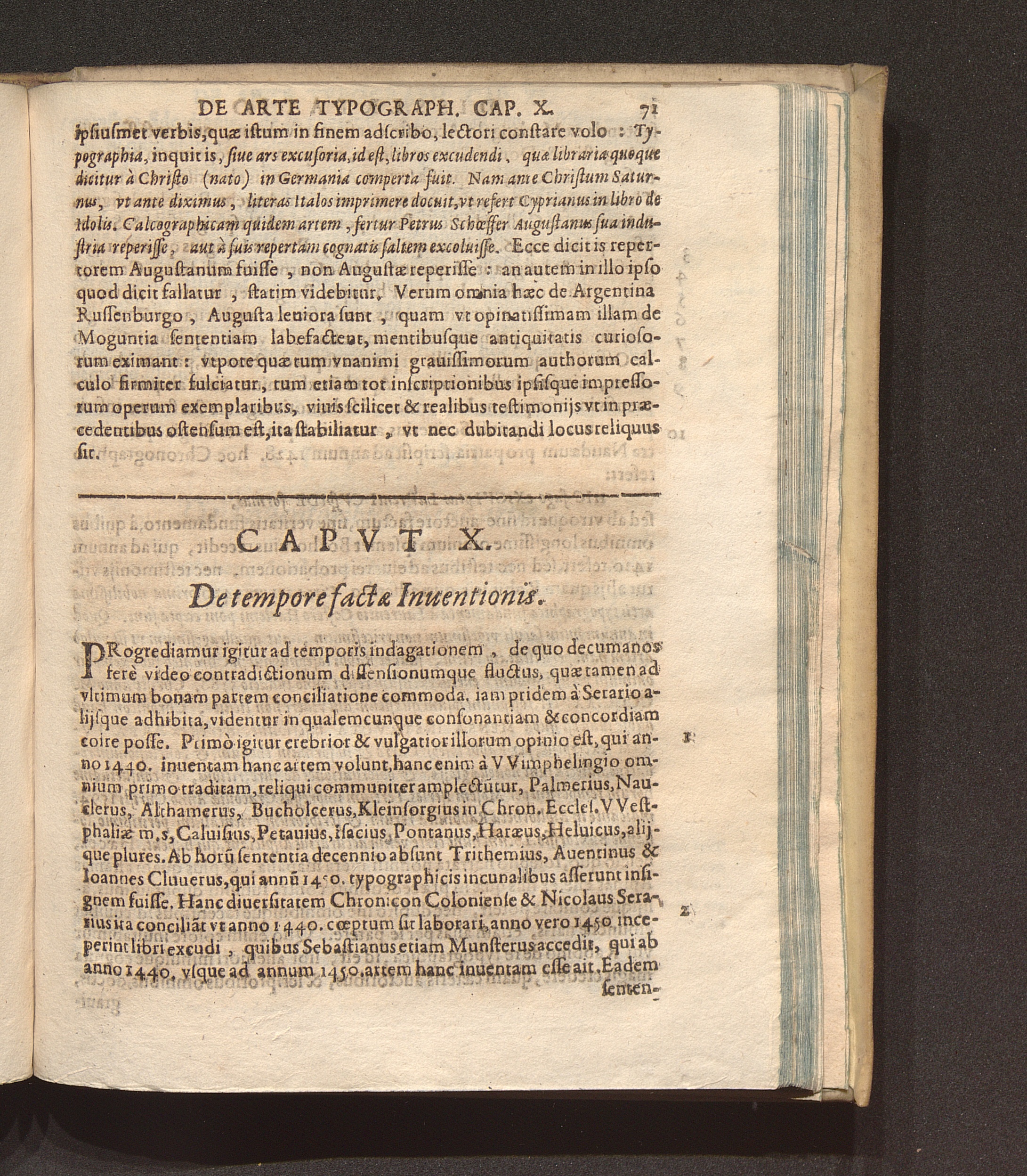 De Ortv Ac Progressv Artis Typographicae Dissertatio Historica : In Qva Praeter alia pleraque Ad Calcographices Negocivm Spectantia De Avctoribvs Et Loco inuentionis praecipuè inquiritur, Proqve Mogvntinis Contra Harlemenses concluditur / A Bernardo A Mallinkrot Decano Monasteriensi ac C. Mindensi