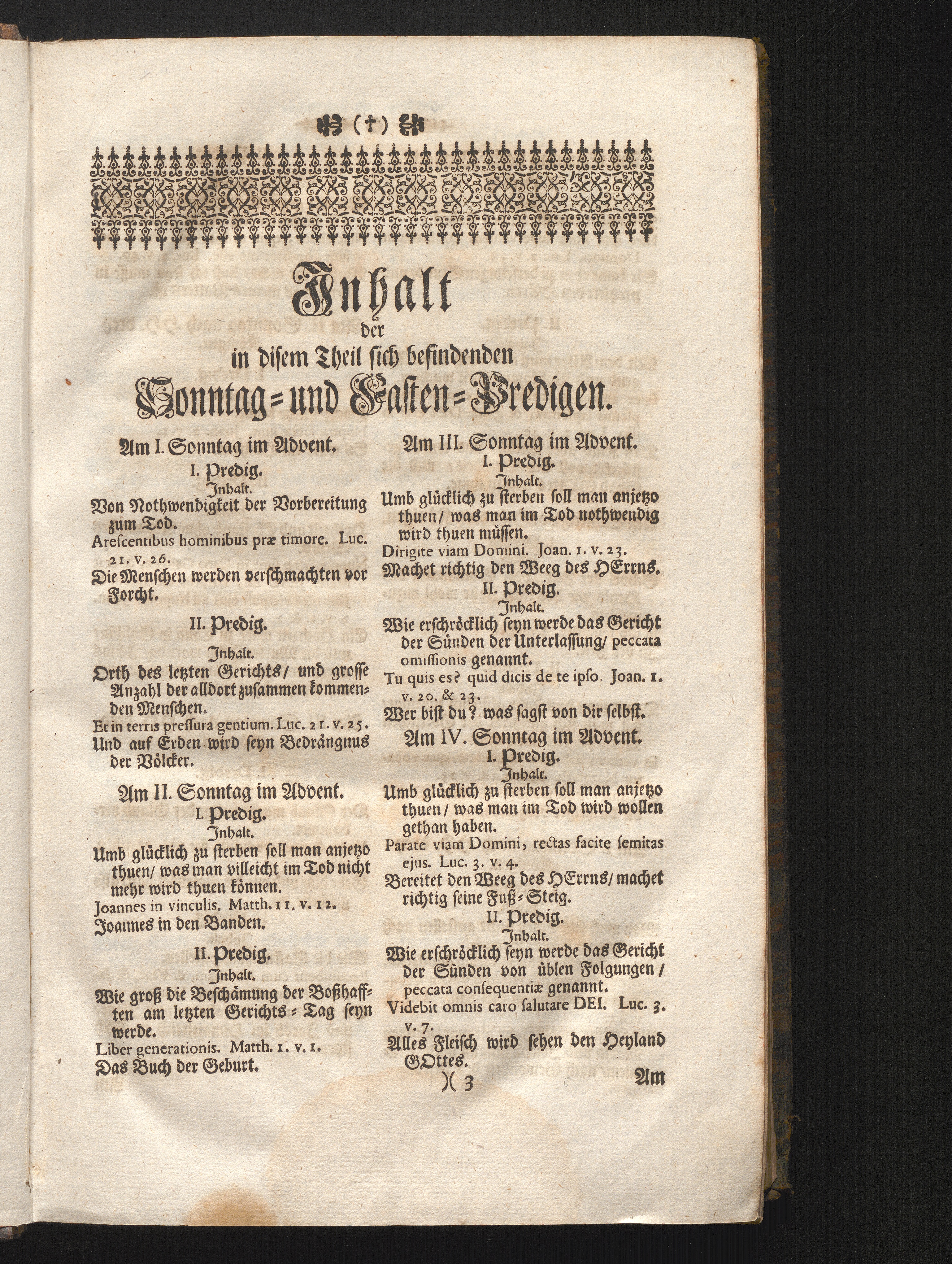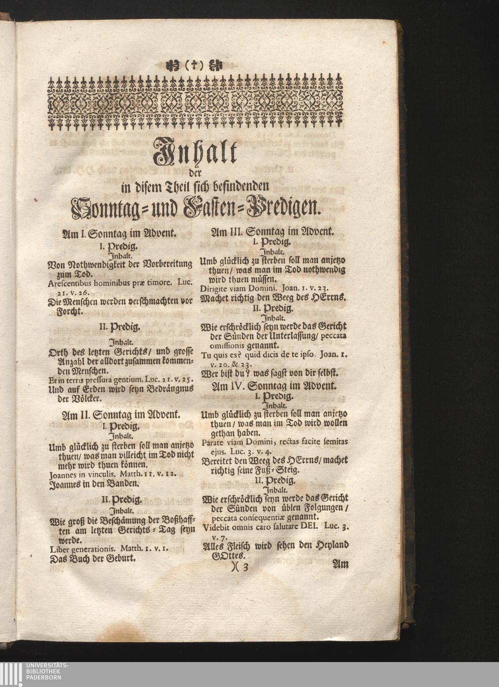 Jnhalt der in disem Theil sich befindenden Sonntag-und Fasten-Predigen.
