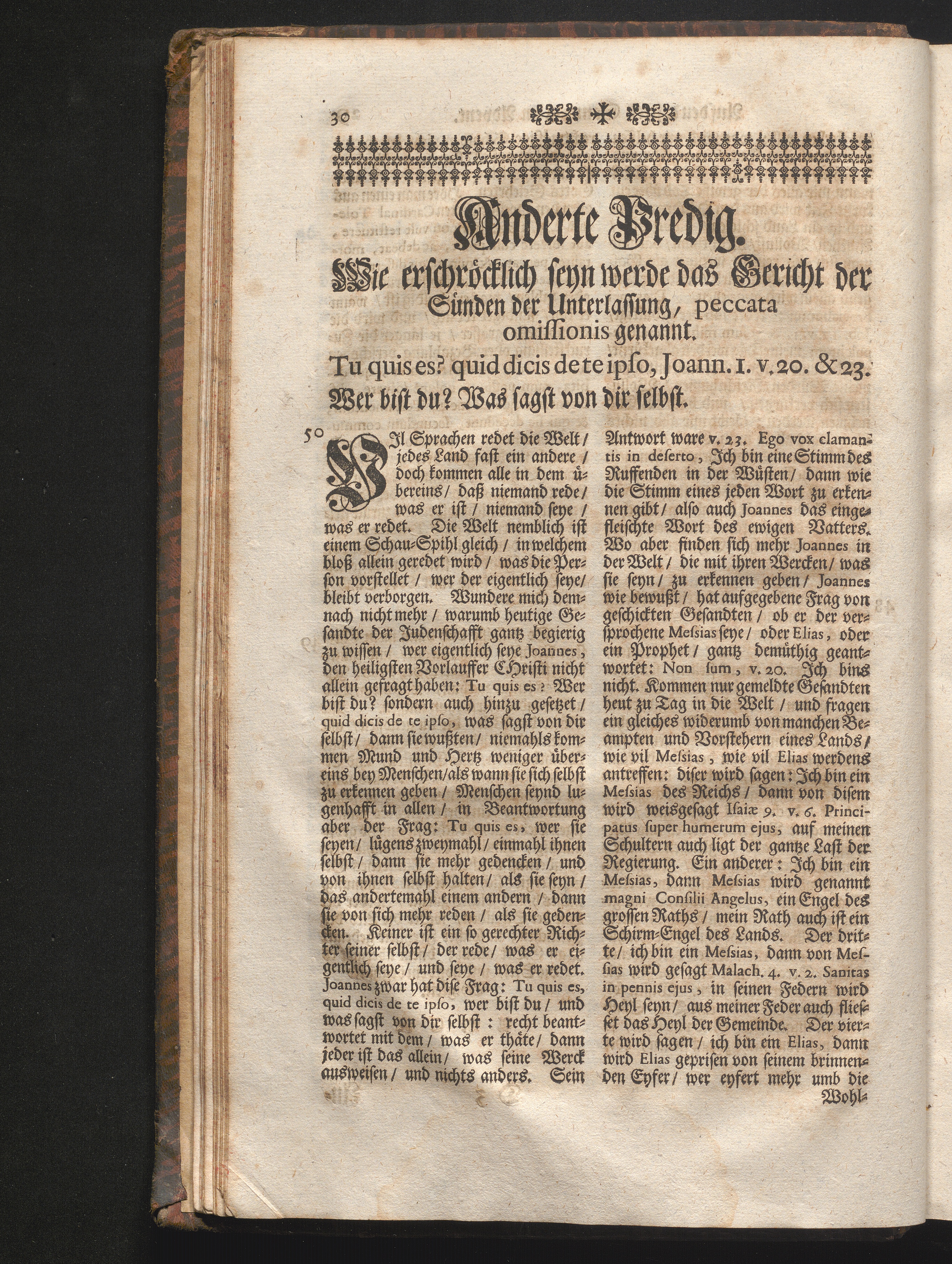 II. Predig. Jnhalt. Wie erschröcklich seyn werde das Gericht der Sünden der Unterlassung/[...]