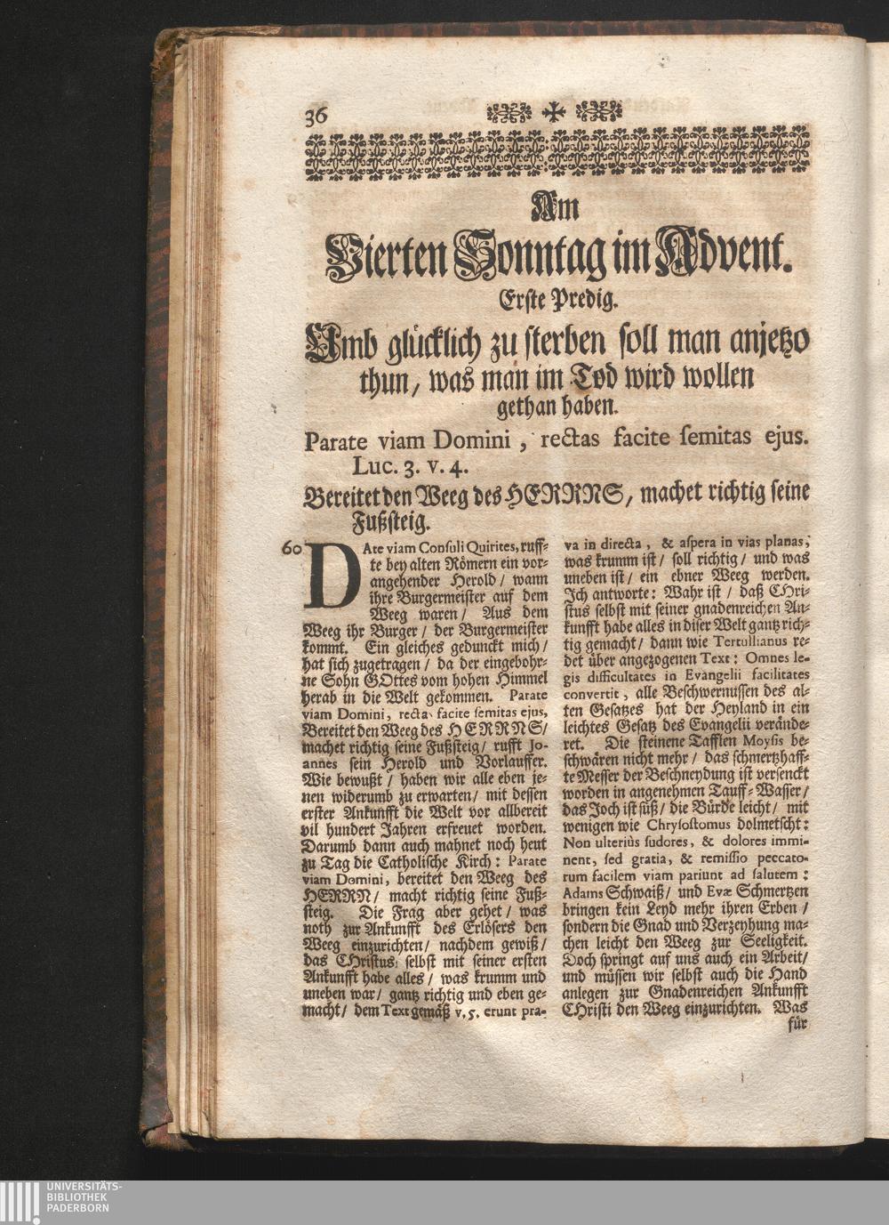 I. Predig. Jnhalt. Umb glücklich zu sterben soll man anjetzo thuen/ was man im Tod[...]