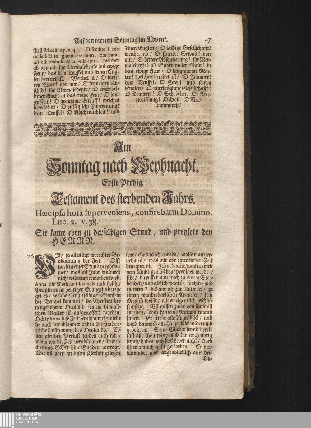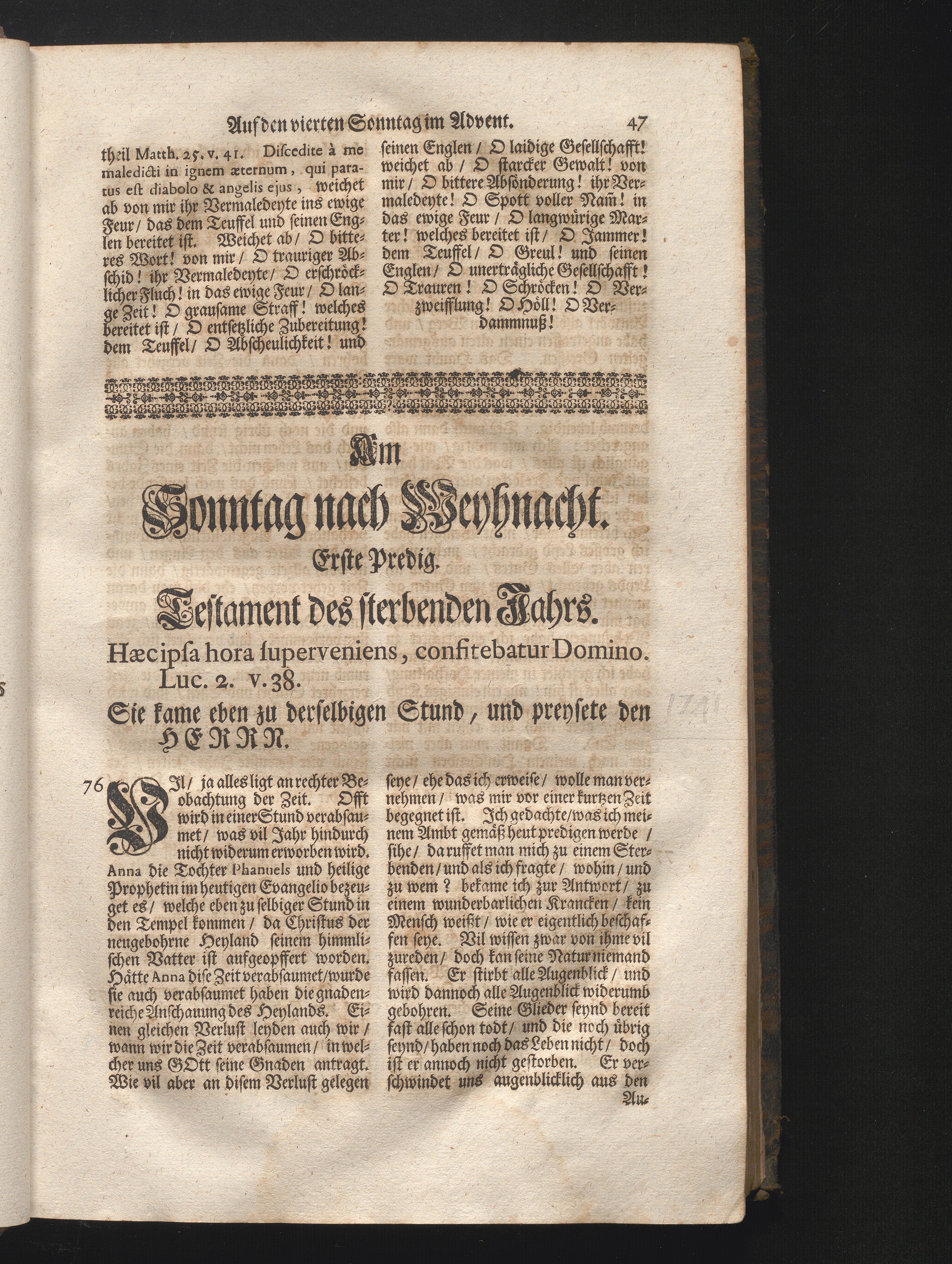 I. Predig. Jnhalt. Testament des sterbenden Jahrs. Hæc ipsa hora superveniens confitebatur[...]