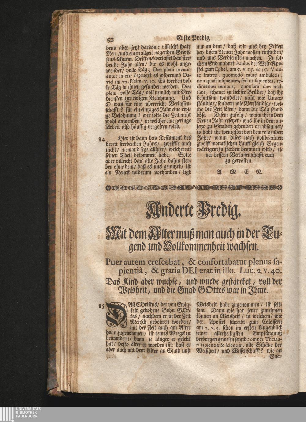 II. Predig. Jnhalt. Mit dem Alter muß man auch in der Tugend und Vollkommenheit wachsen.[...]
