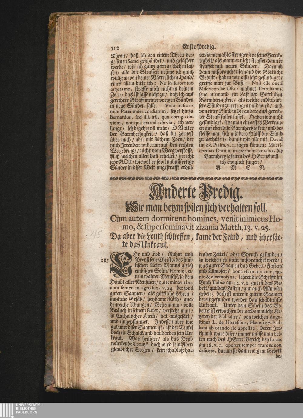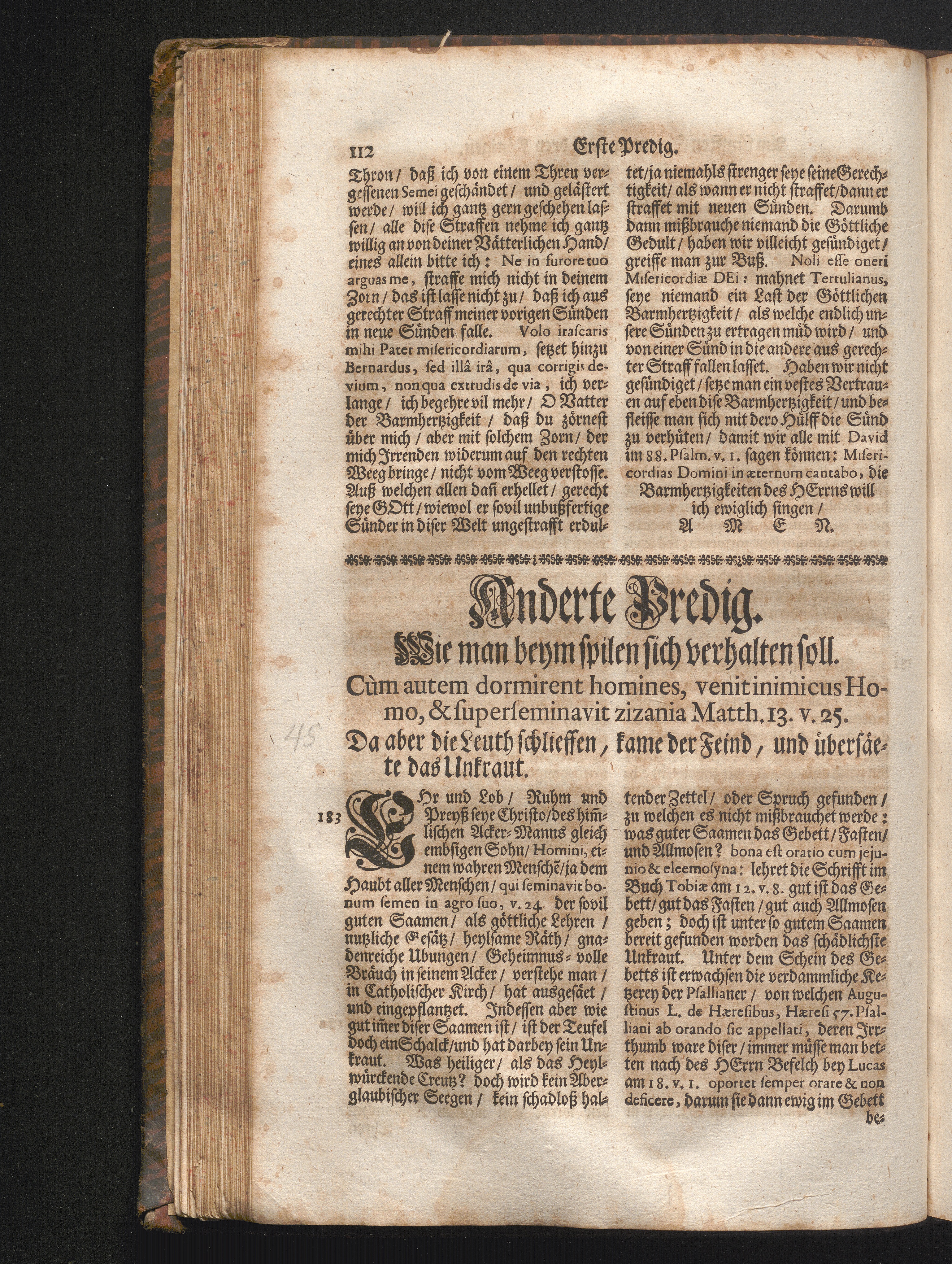 II. Predig. Jnhalt. Wie man beym spilen sich verhalten soll. Cùm autem dormirent[...]