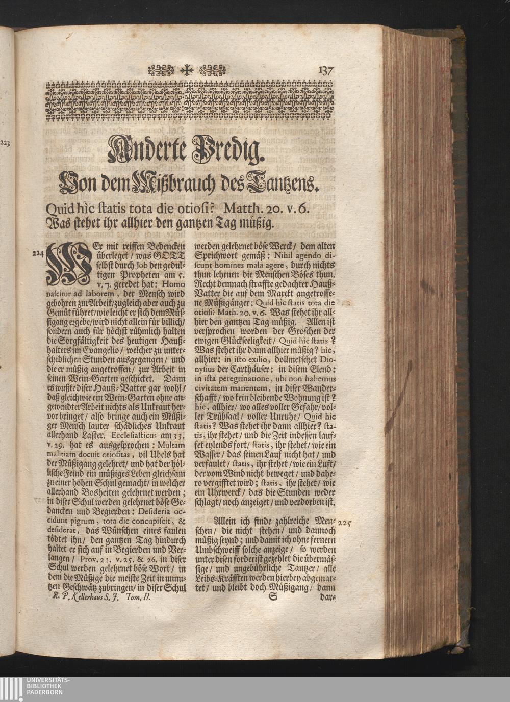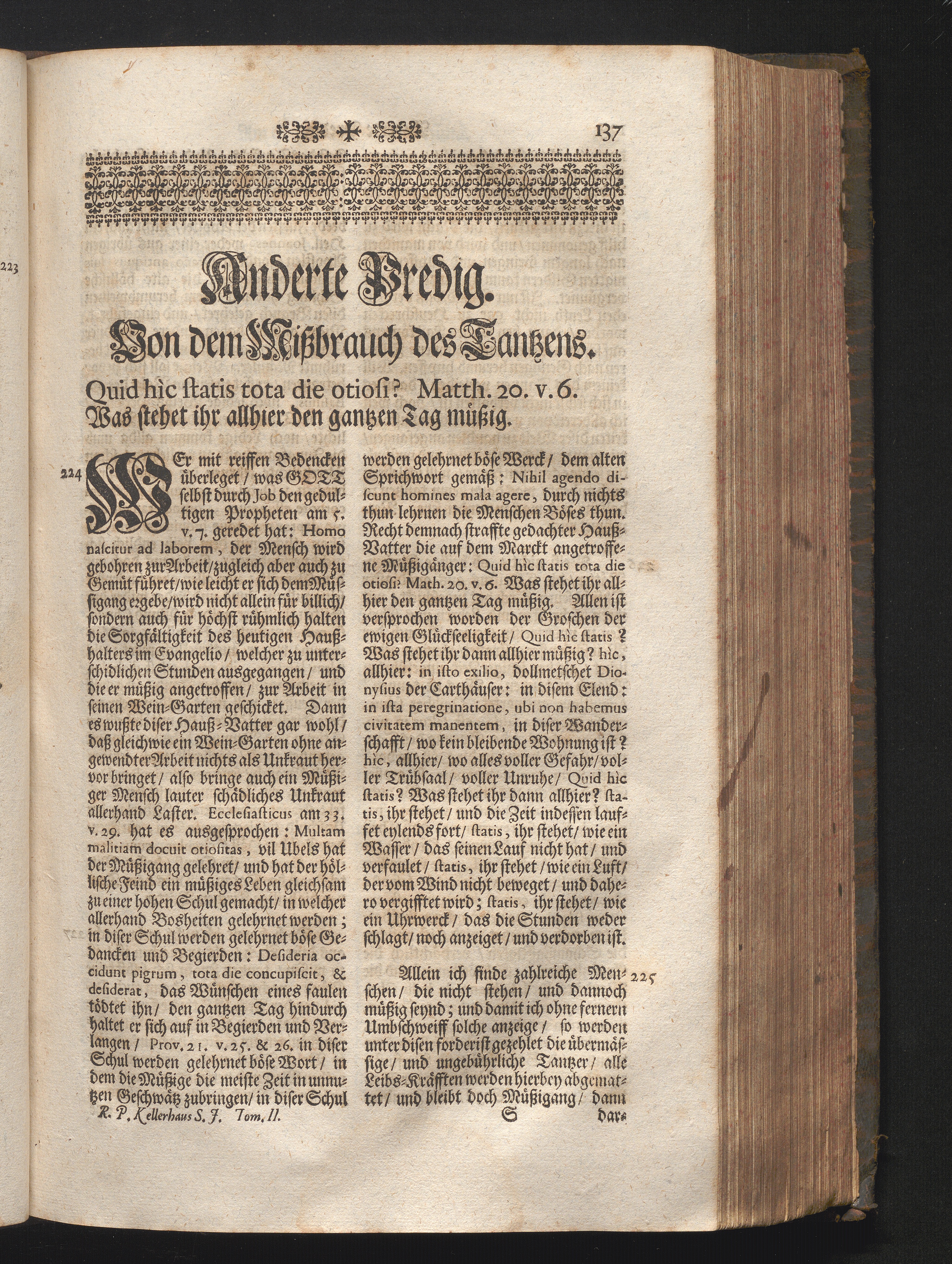 II. Predig. Jnhalt. Von dem Mißbrauch des Tantzens. Quid hic statis tota die otiosi.[...]