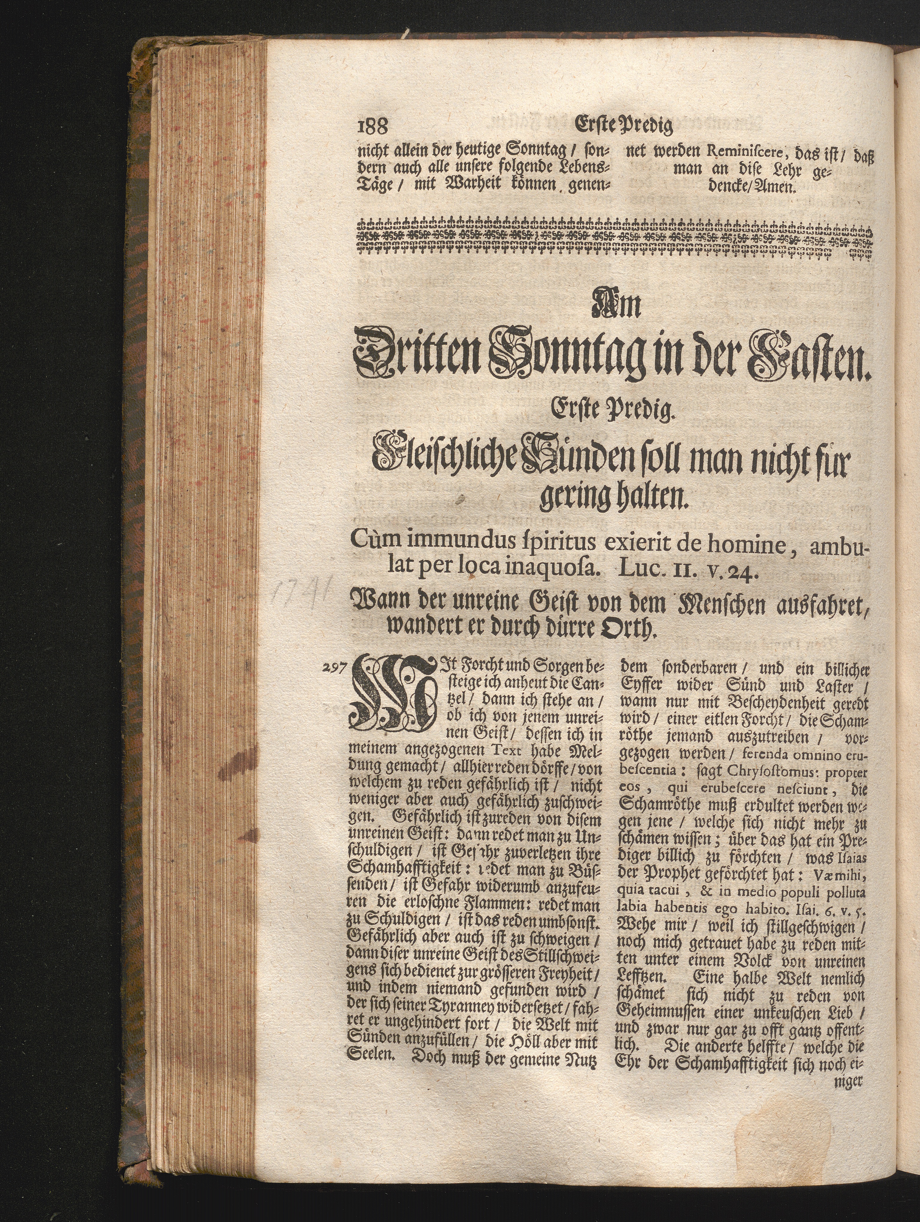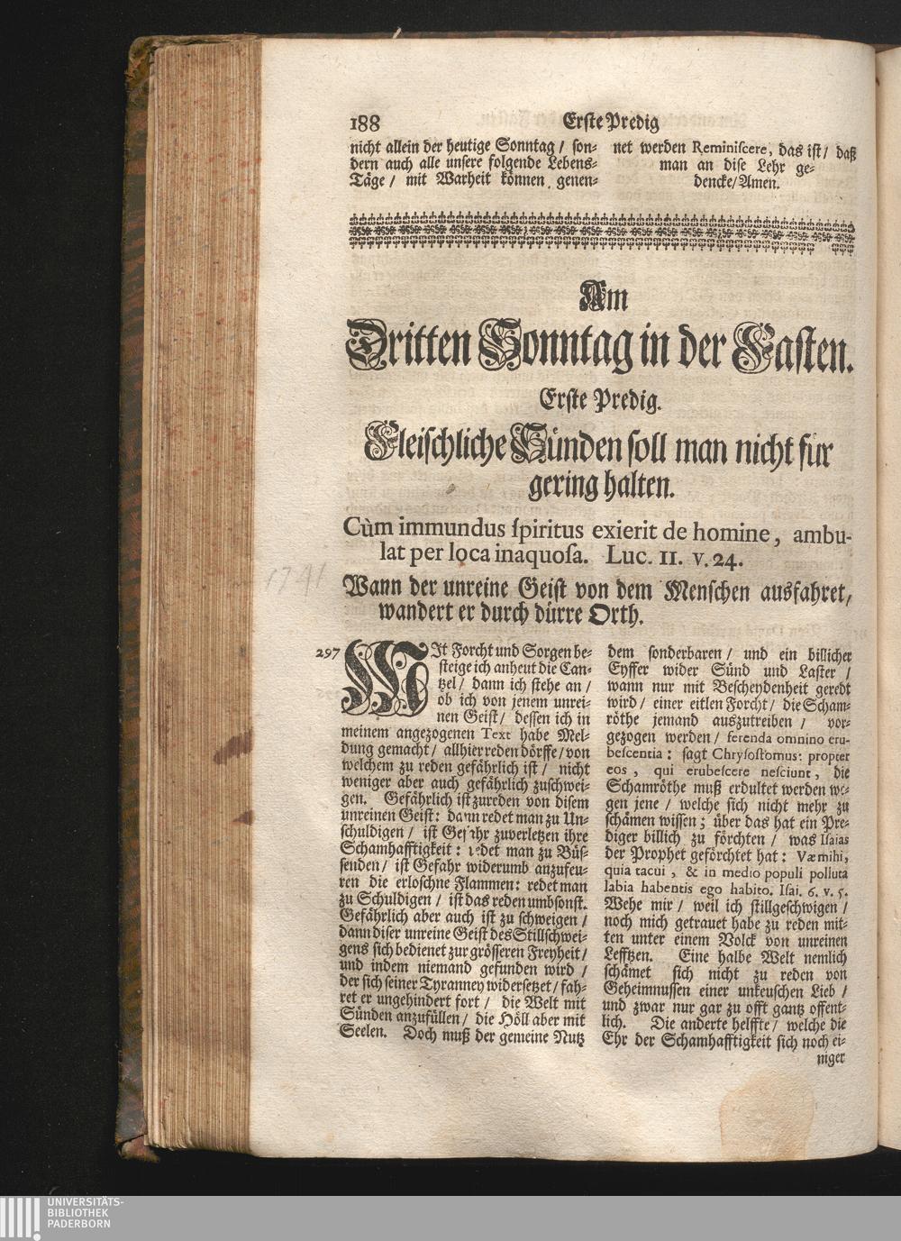 I. Predig. Jnhalt. Fleischliche Sünden soll man nicht für gering halten. Cùm immundus[...]