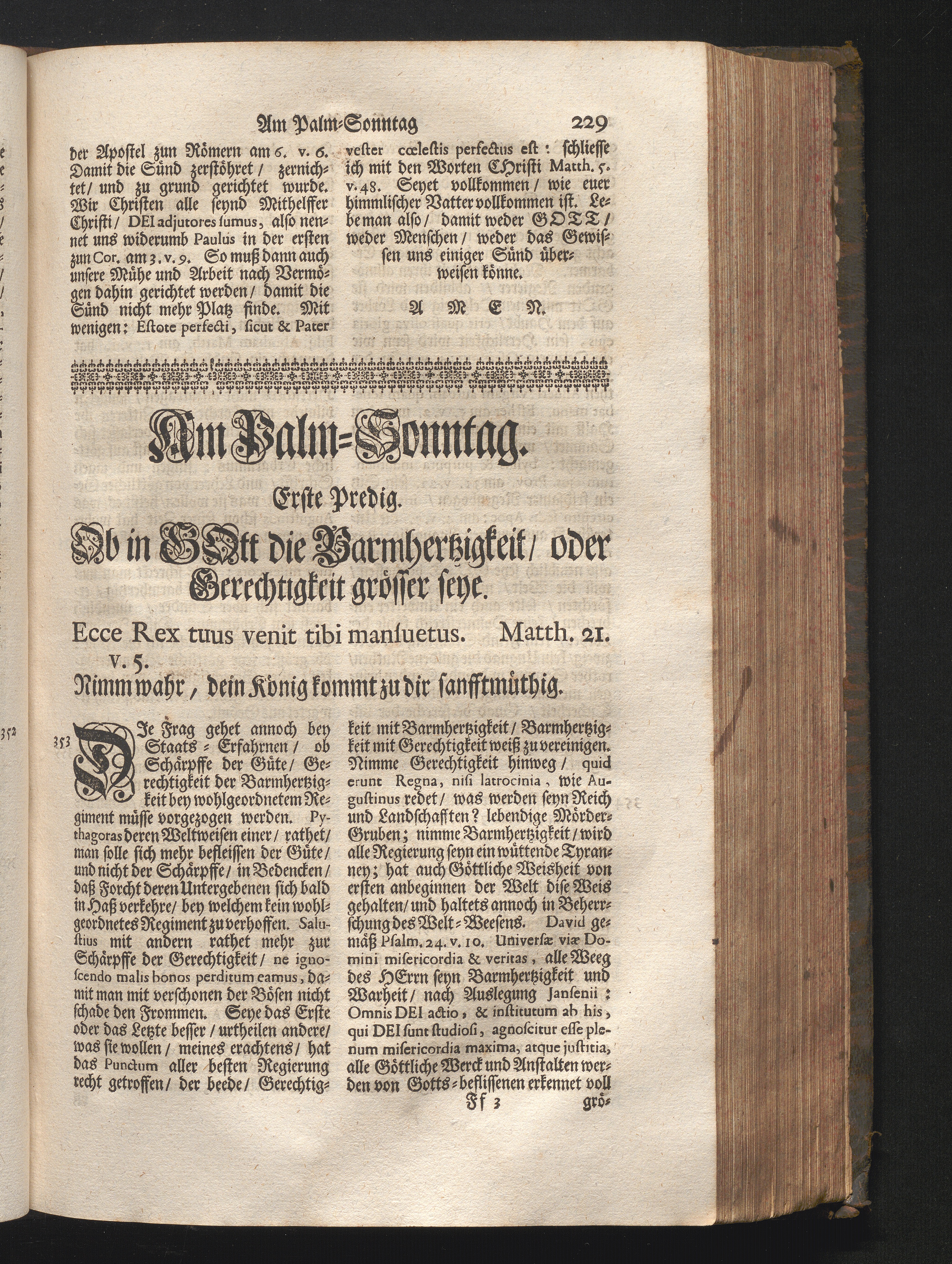 I. Predig. Jnhalt. Ob in Gott die Barmhertzigkeit/ oder Gerechtigkeit grösser seye.[...]