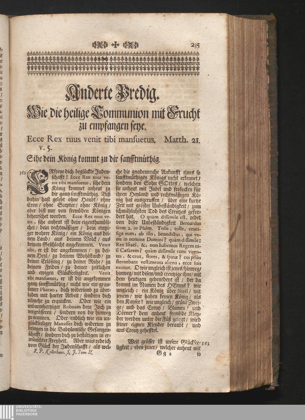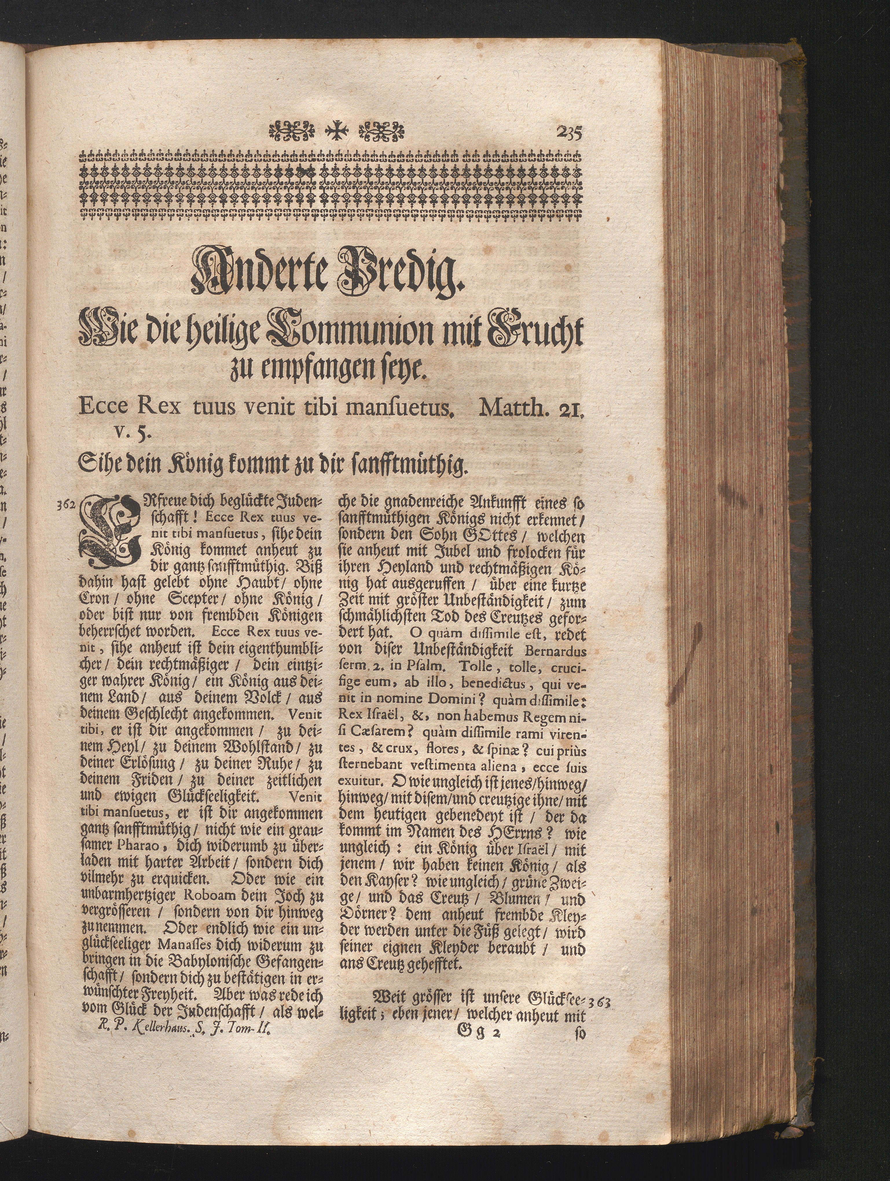 II. Predig. Jnhalt. Wie die Heilige Communion mit Frucht zu empfangen seye. Ecce[...]