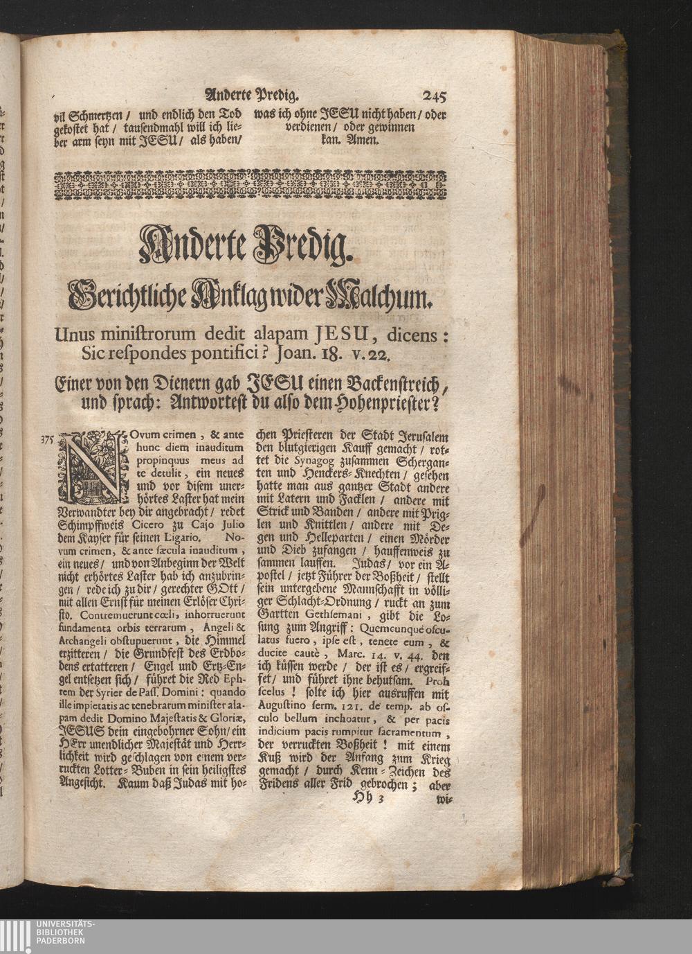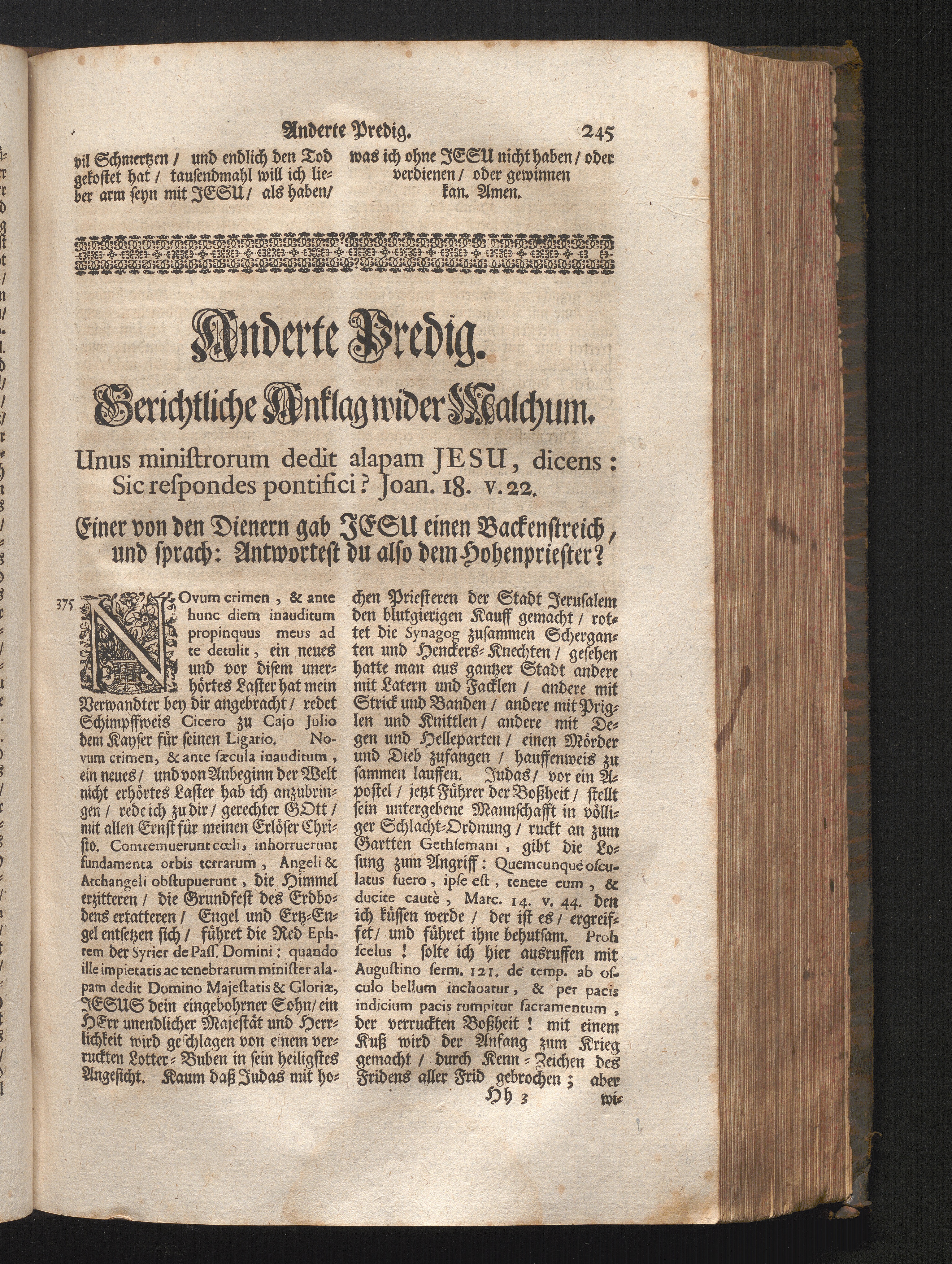 II. Predig. Jnhalt. Gerichtliche Anklag wider Malchum. Unus ministrorum dedit alapam[...]