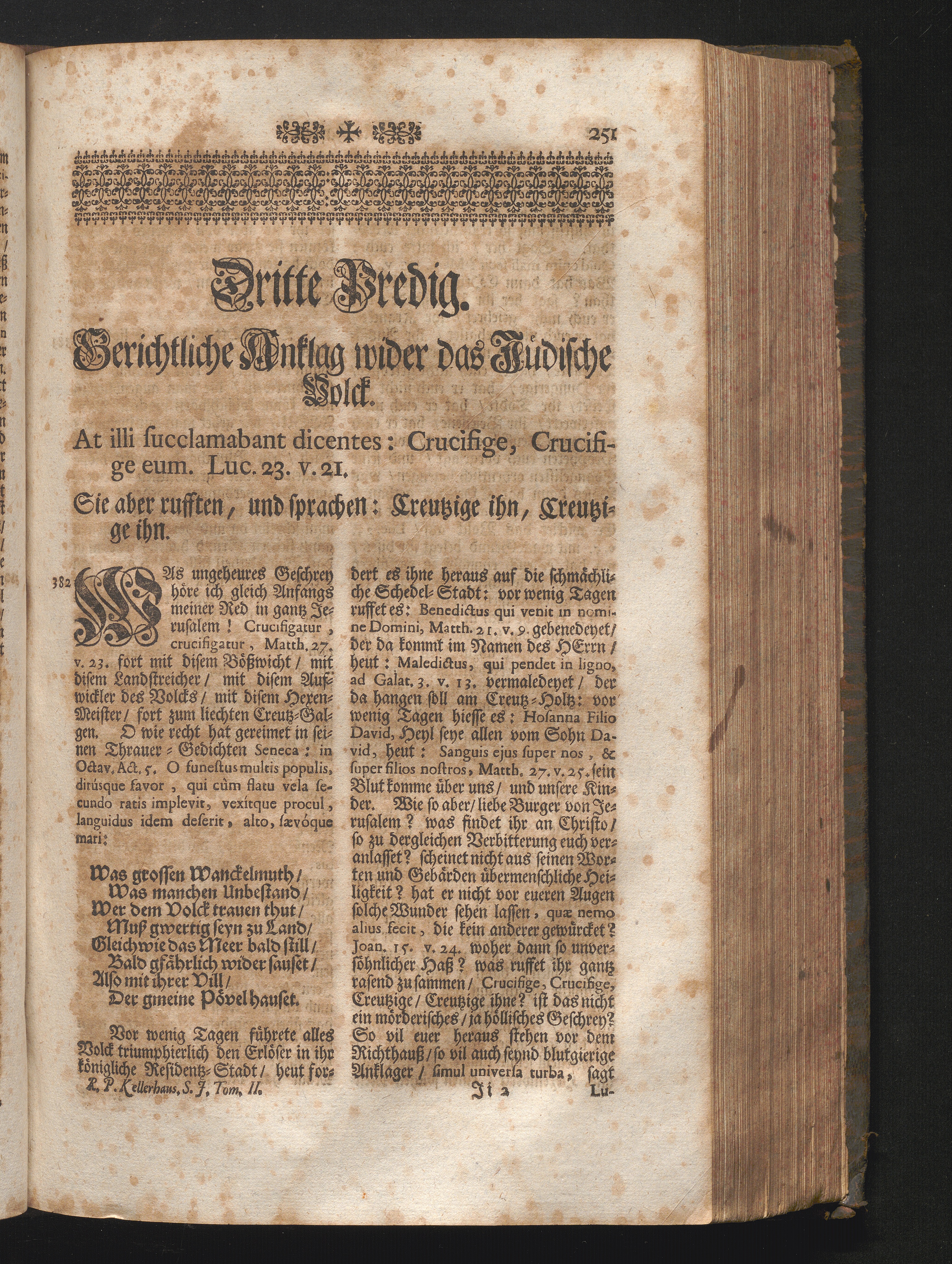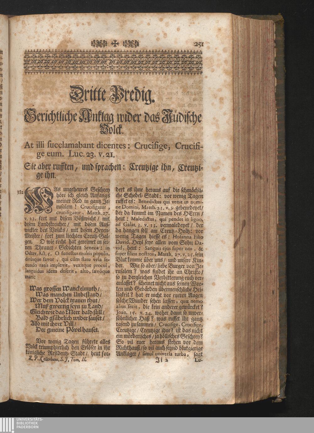 III. Predig. Jnhalt. Gerichtliche Anklag wider das Jüdische Volck. At illi succlamabant[...]