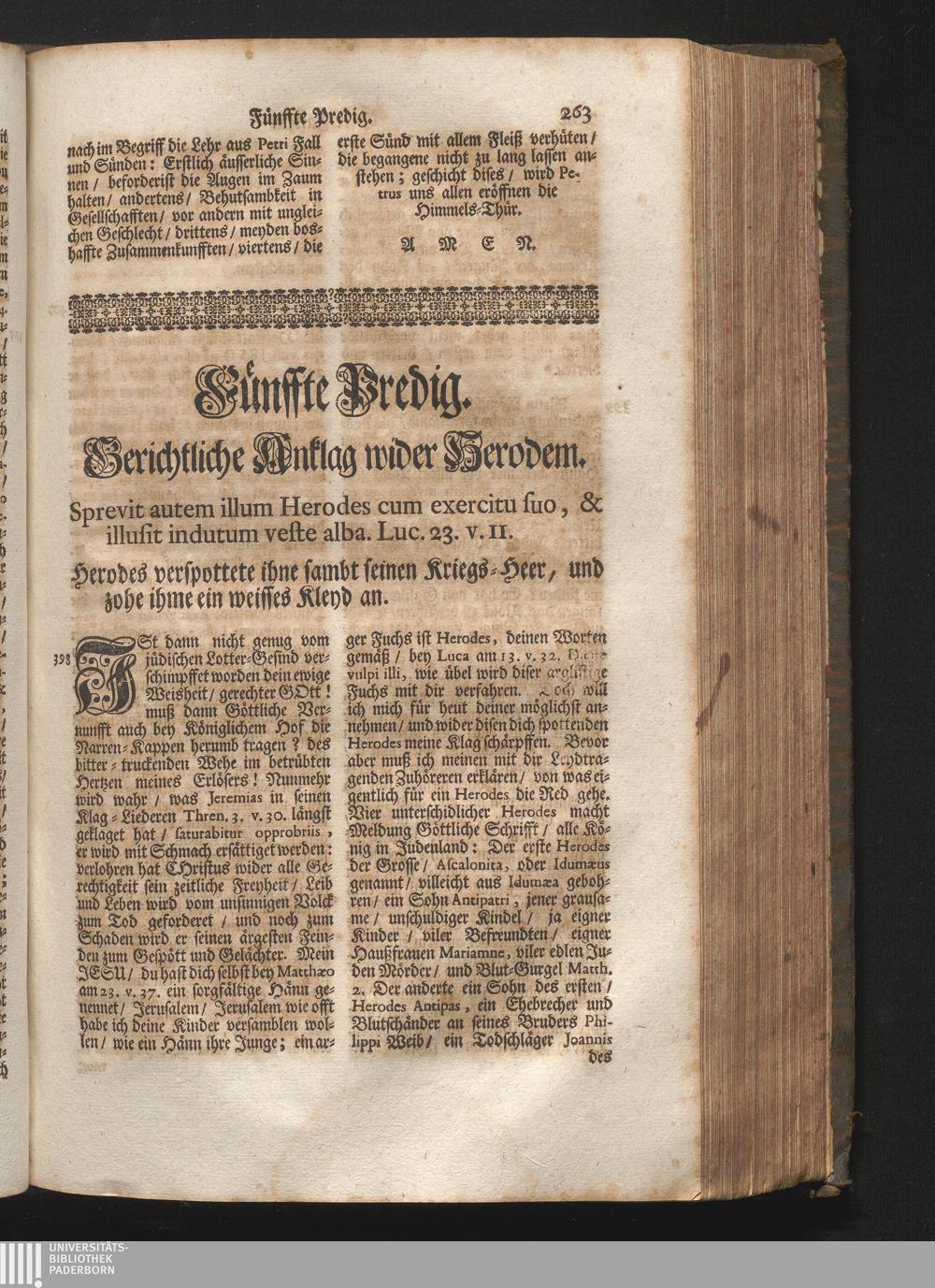 V. Predig. Jnhalt. Gerichtliche Anklag wider Herodem. Sprevit autem illum Herodes[...]