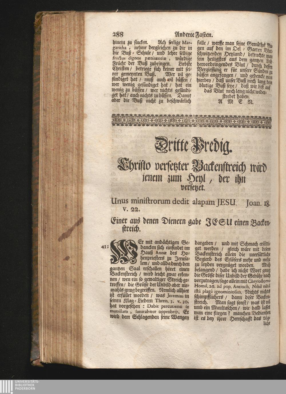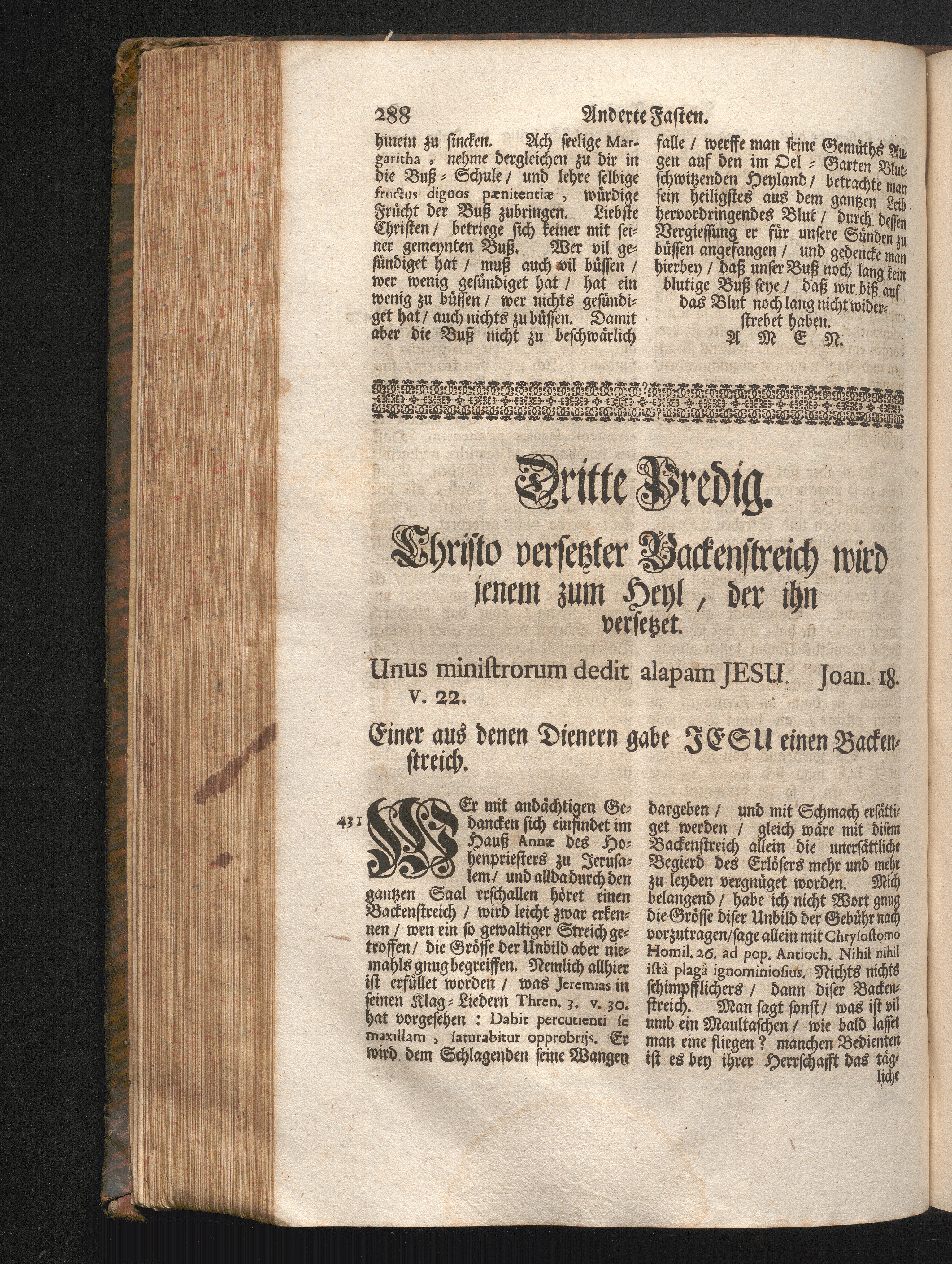 III. Predig. Jnhalt. Christo versetzter Backenstreich wird jenem zum Heyl/ der ihn[...]