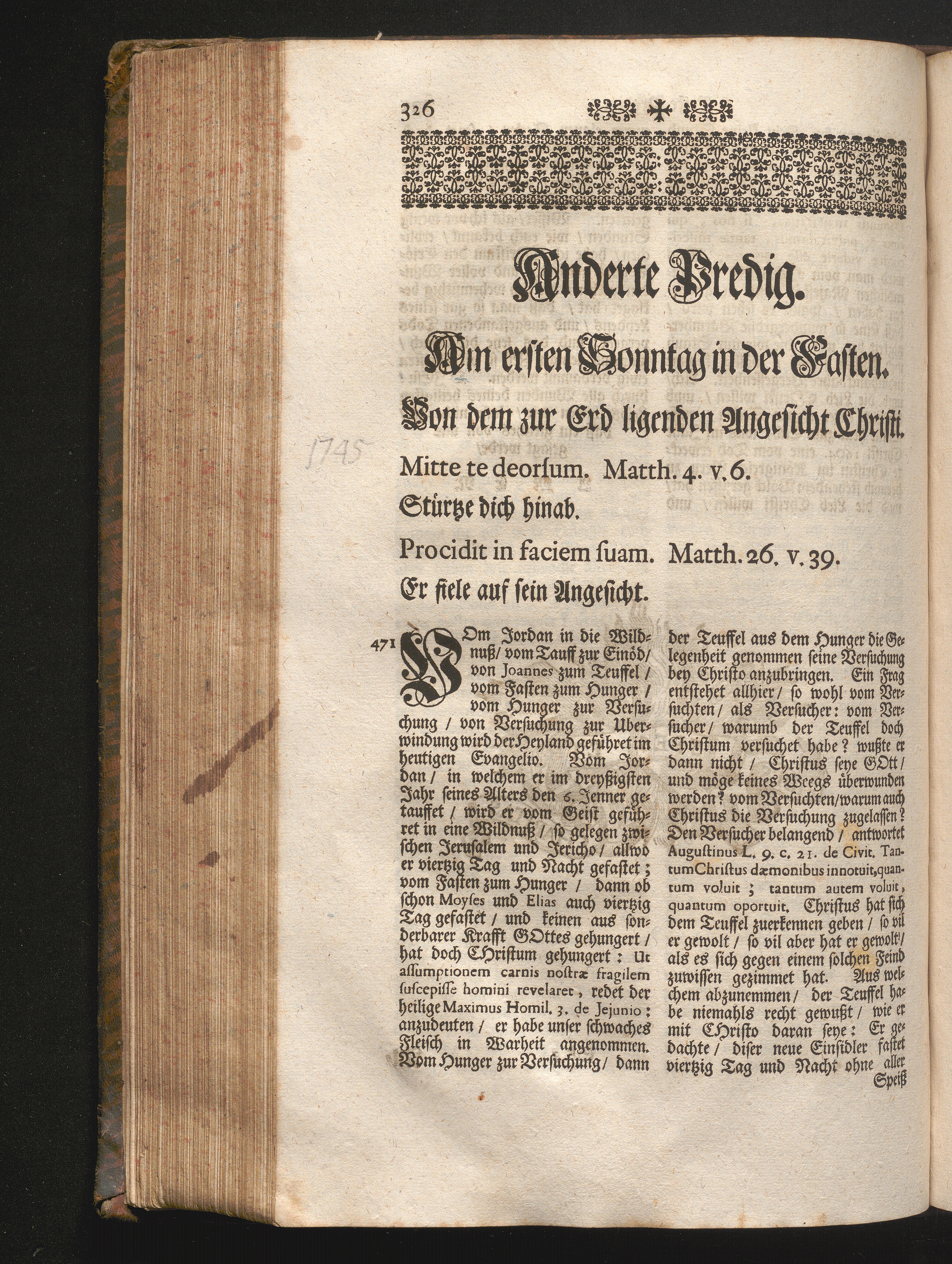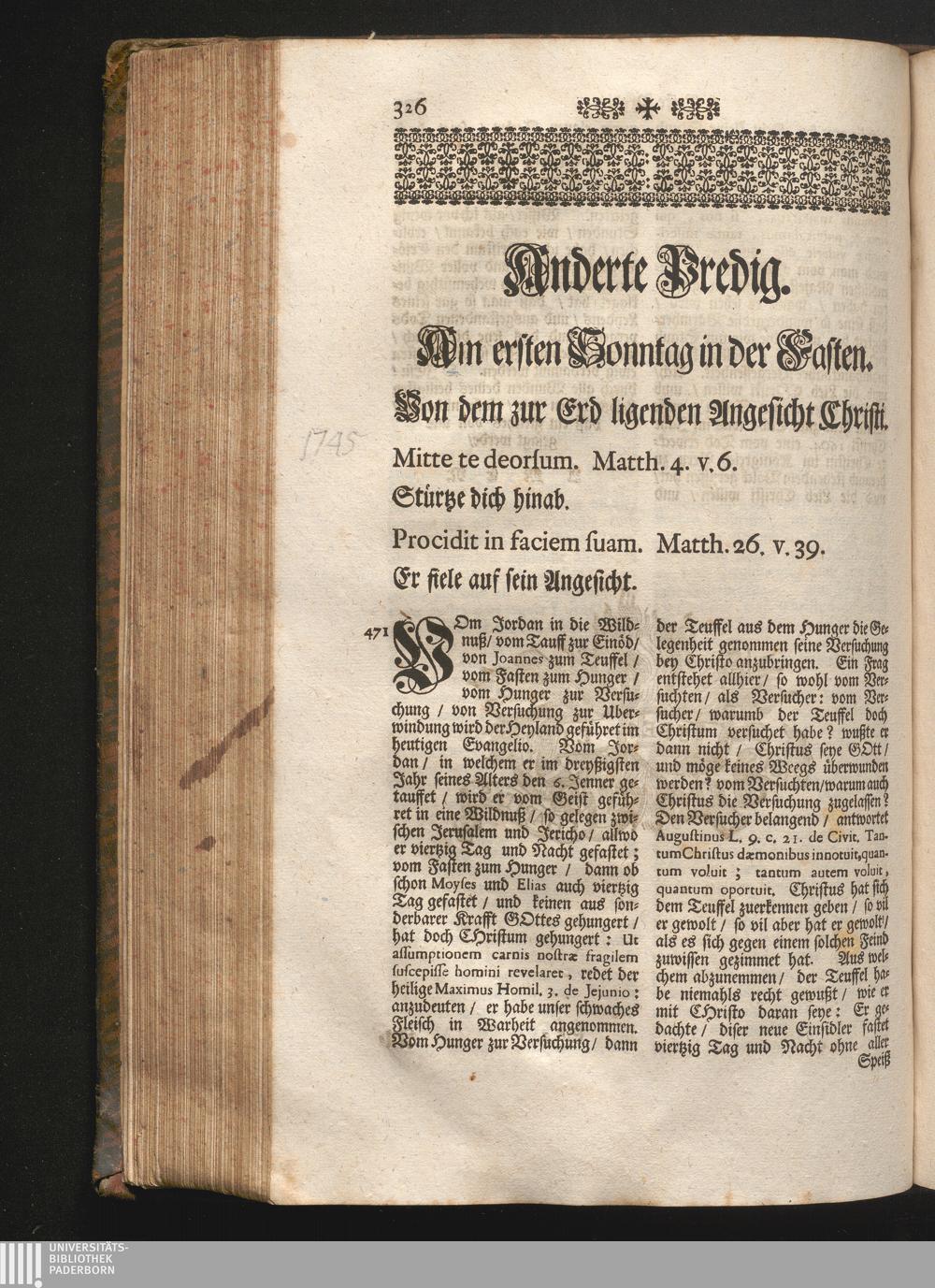 II. Predig. Am ersten Sonntag in der Fasten. Jnhalt. Von dem zur Erd ligenden Angesicht[...]