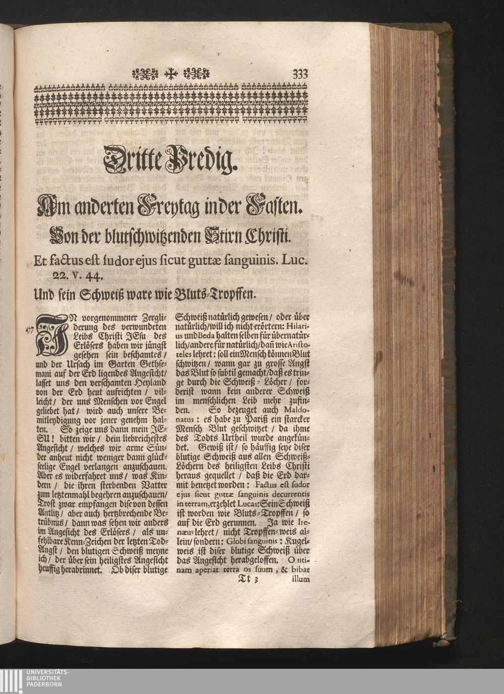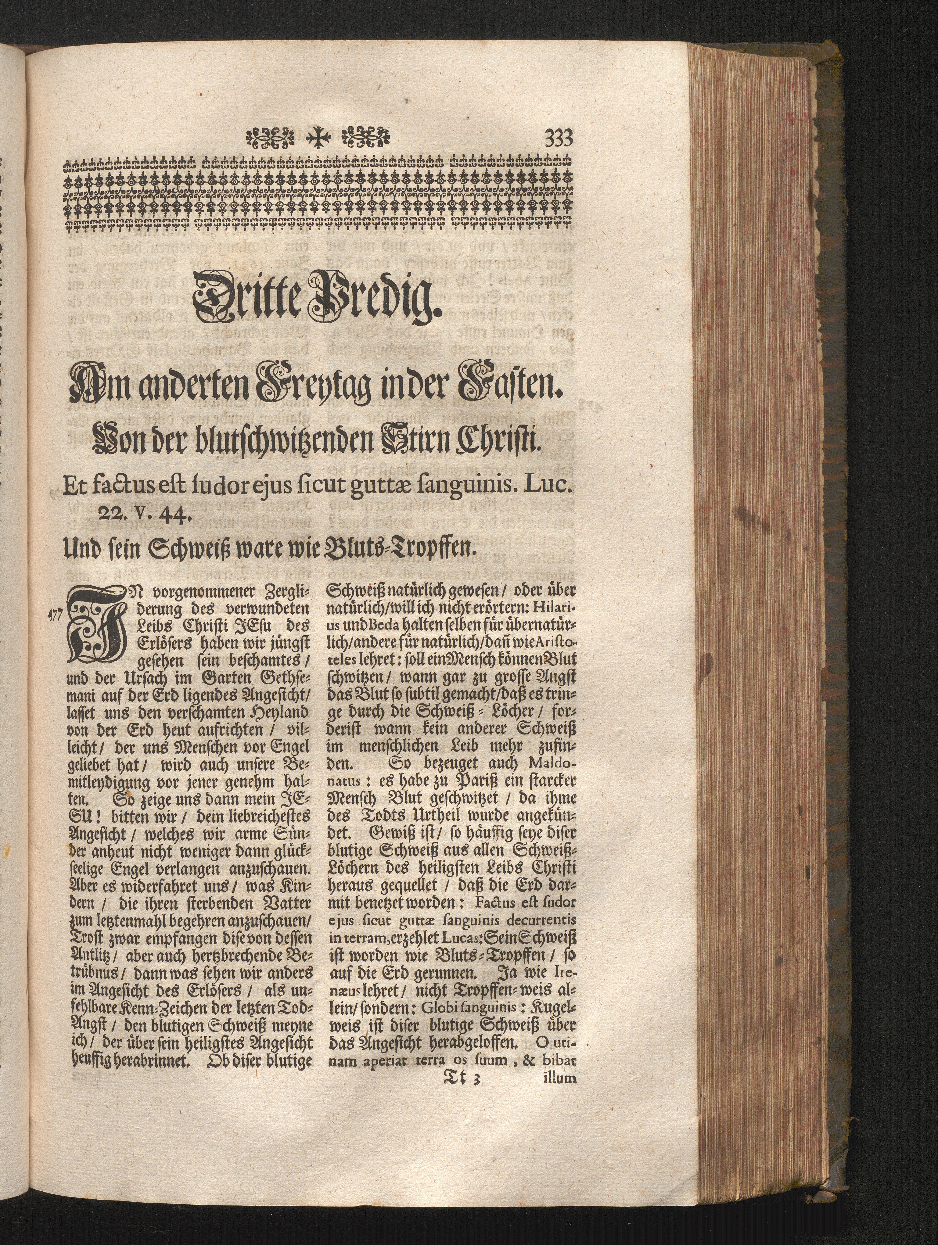 III. Predig. Am anderten Freytag in der Fasten. Jnhalt. von der Blut-schwitzenden[...]