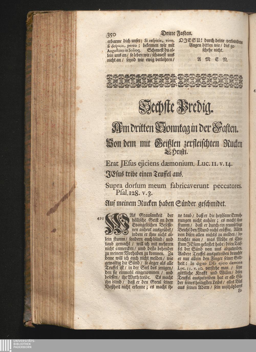 VI. Predig. Am dritten Sonntag in der Fasten. Jnhalt. Von dem mit Geißlen zerfleischten[...]
