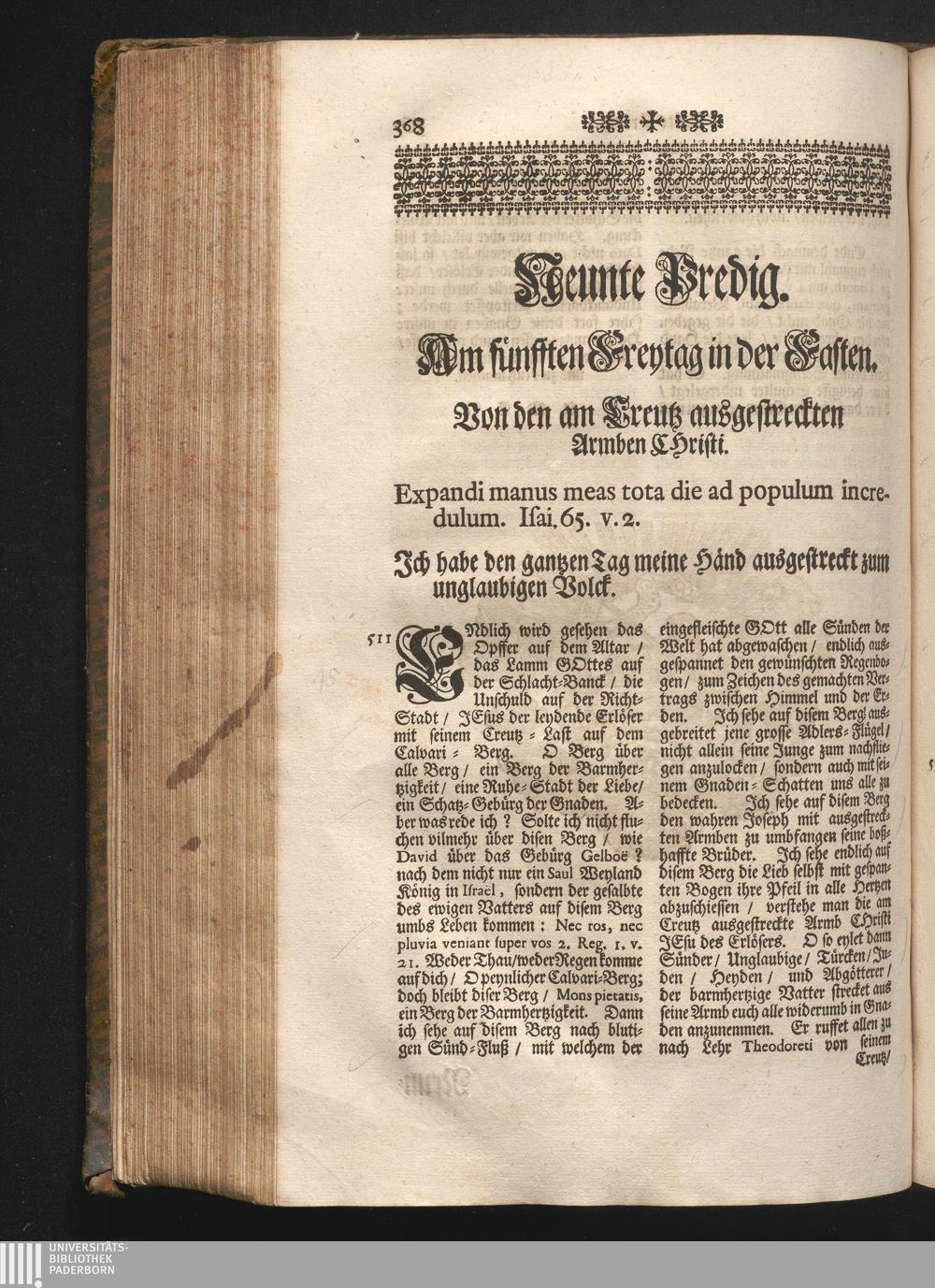 IX. Am fünfften Freytag in der Fasten. Jnhalt. von den am Creutz ausgestreckten Armben[...]
