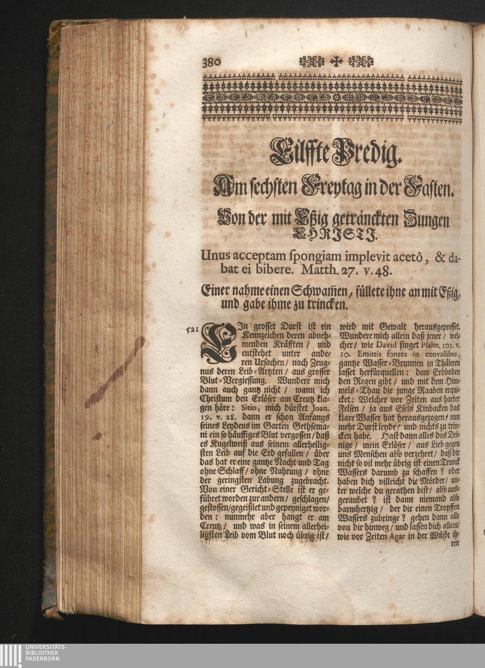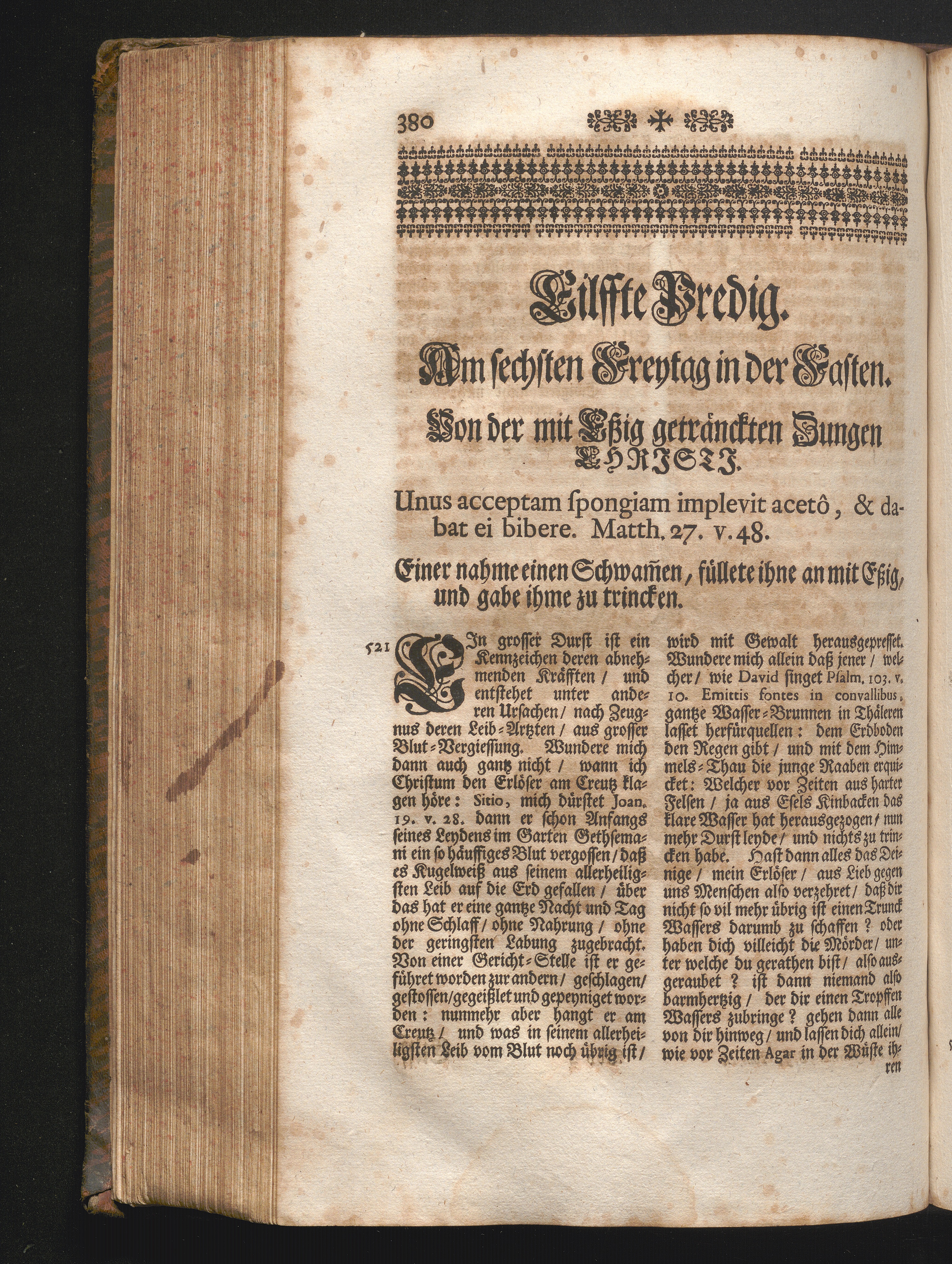 XI. Predig. Am sechsten Freytag in der Fasten. Jnhalt. Von der mit Eßig getränckten[...]