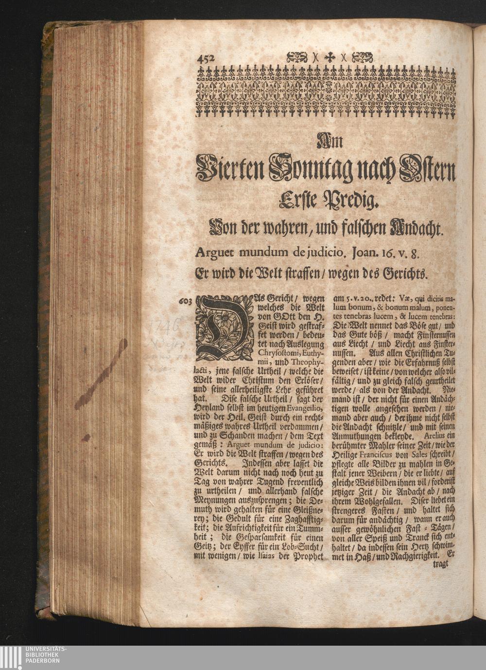 I. Predig. Jnhalt. Von der wahren/ und falschen Andacht. Arguet mundum de judicio.[...]