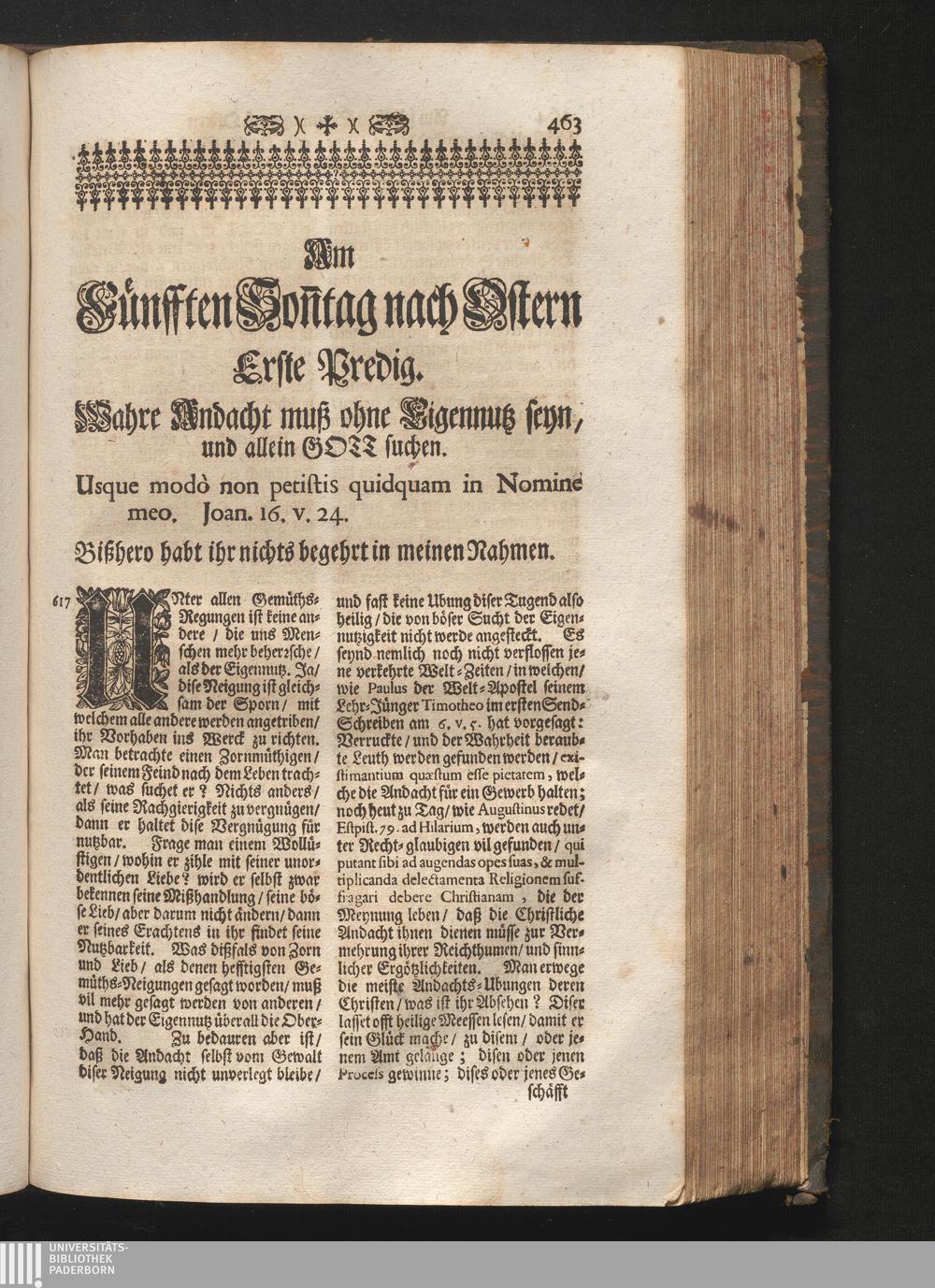 I. Predig. Jnhalt. Wahre Andacht muß ohne Eigen-Nutz seyn/ und allein Gott suchen.[...]