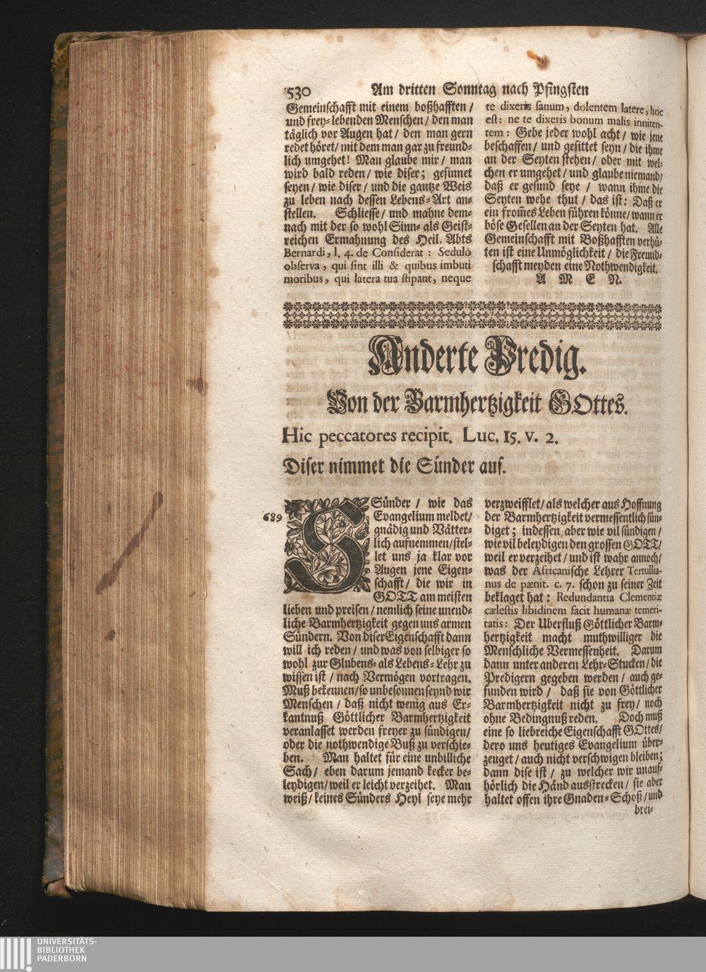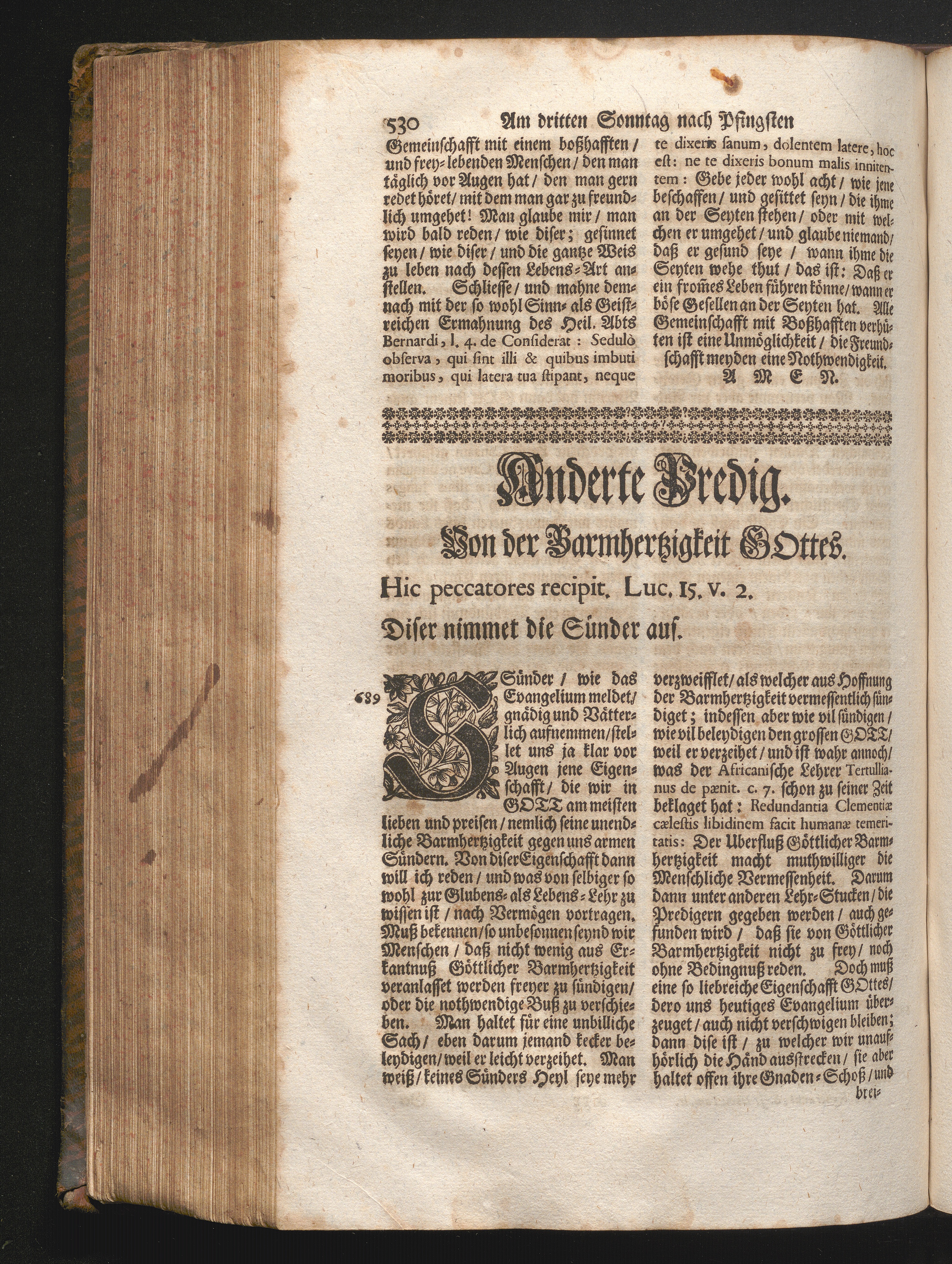 II. Predig. Jnhalt. Von der Barmhertzigkeit Gottes. Hic peccatores recipit. Luc.[...]